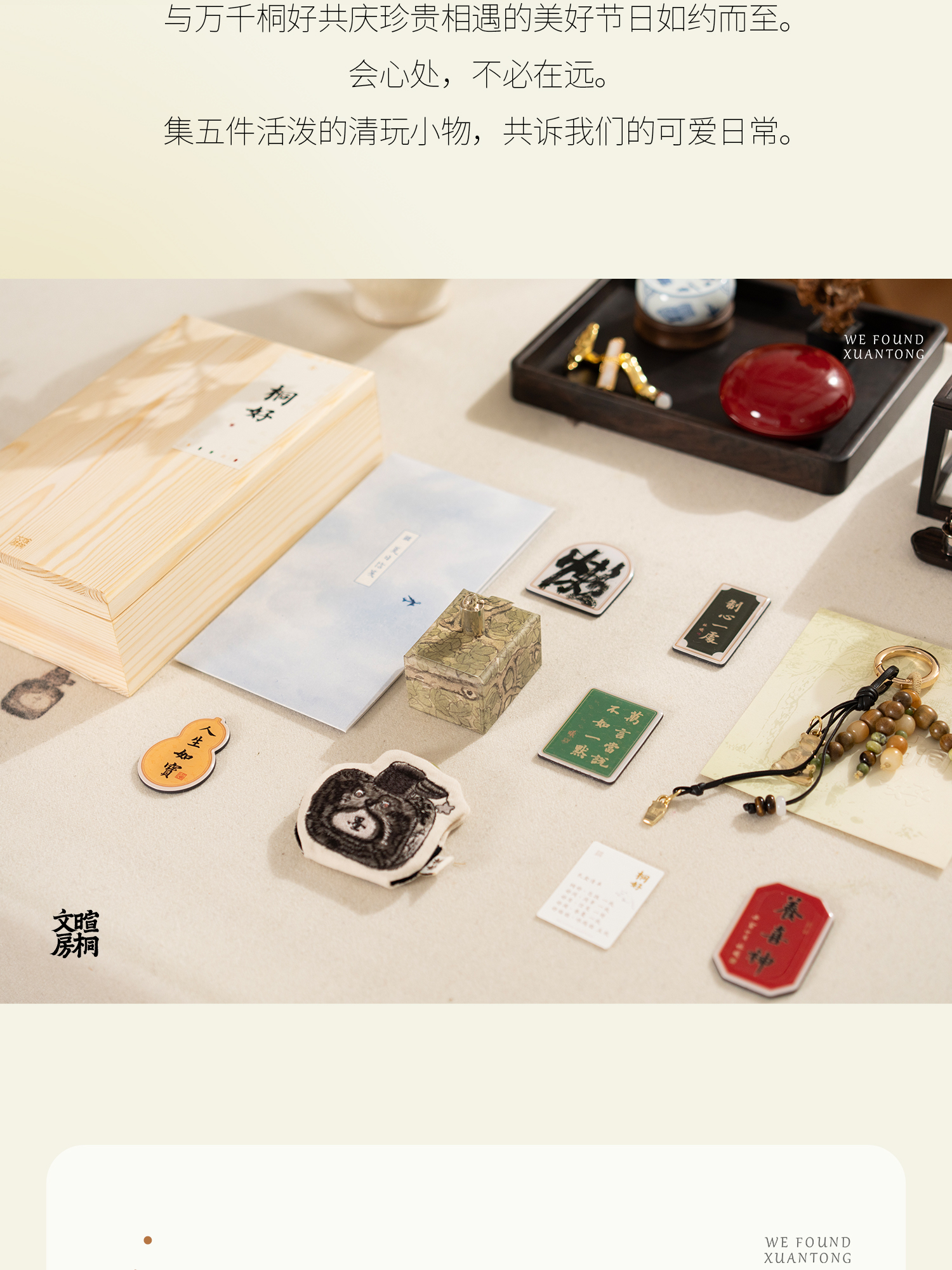 山林曦照 暄桐文房 福慧双得 多用实木案几套组