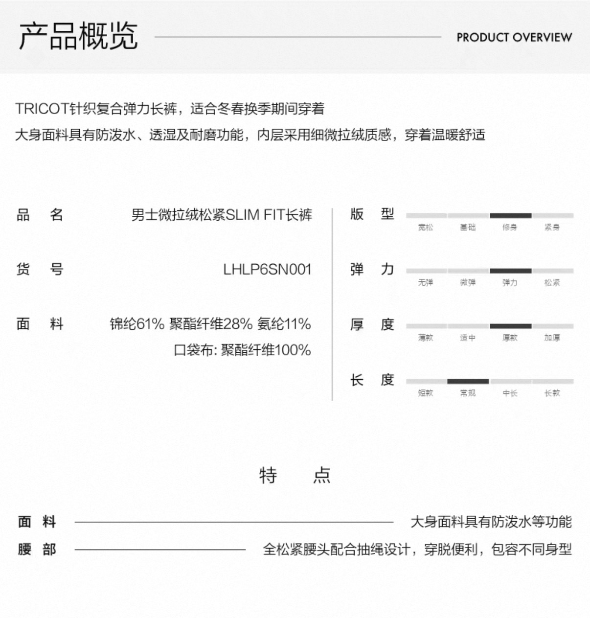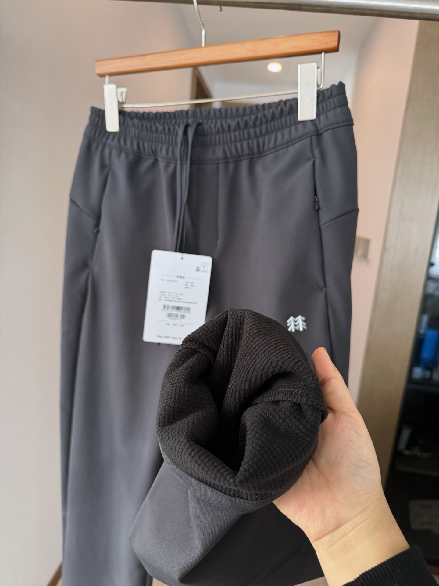微拉绒内里:内层是细腻的细微拉绒质感,华夫格绒面亲肤又锁温,冬春换季单穿不冷,北方秋冬内搭秋裤也不臃肿,南方过冬完全够用。KL隆男士微拉绒松紧SLIM FIT长裤