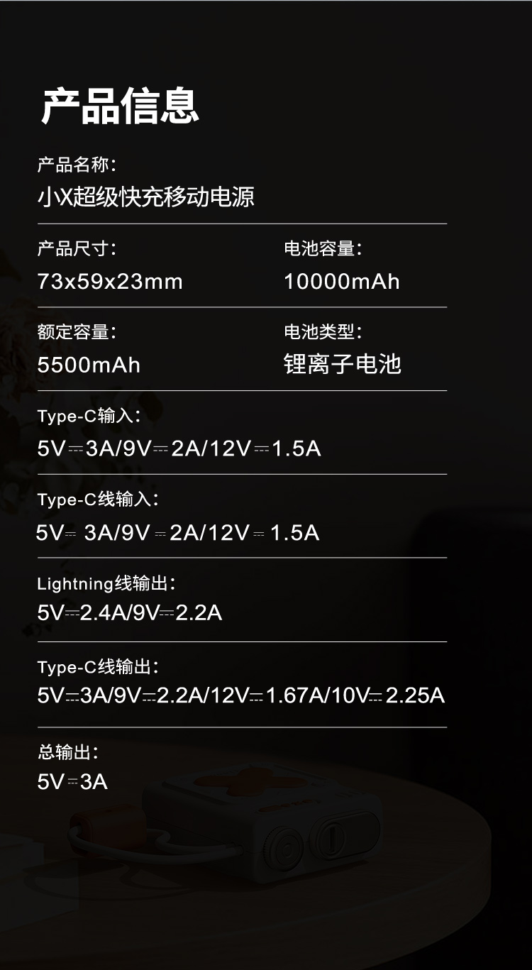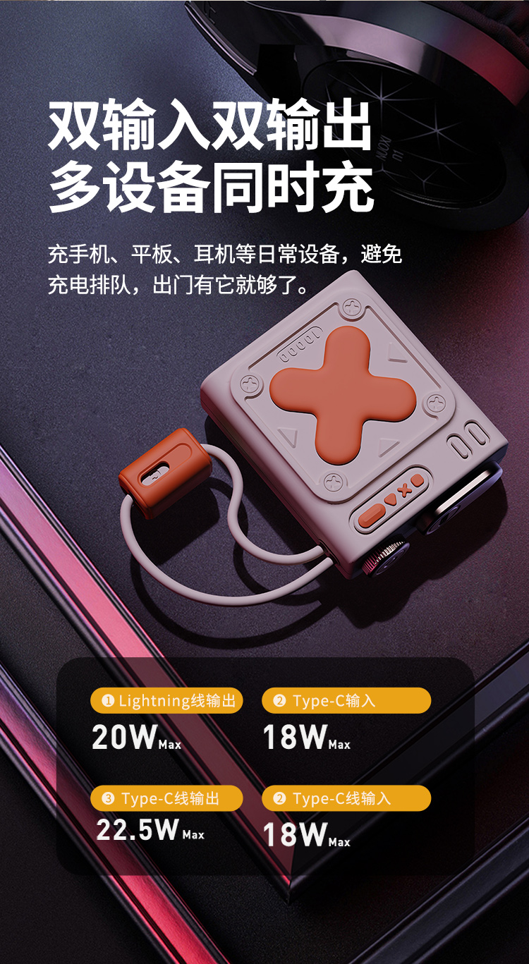 imu幻响小X自带线移动电源10000mAh迷你小巧便携快充充电宝22.5W-分销