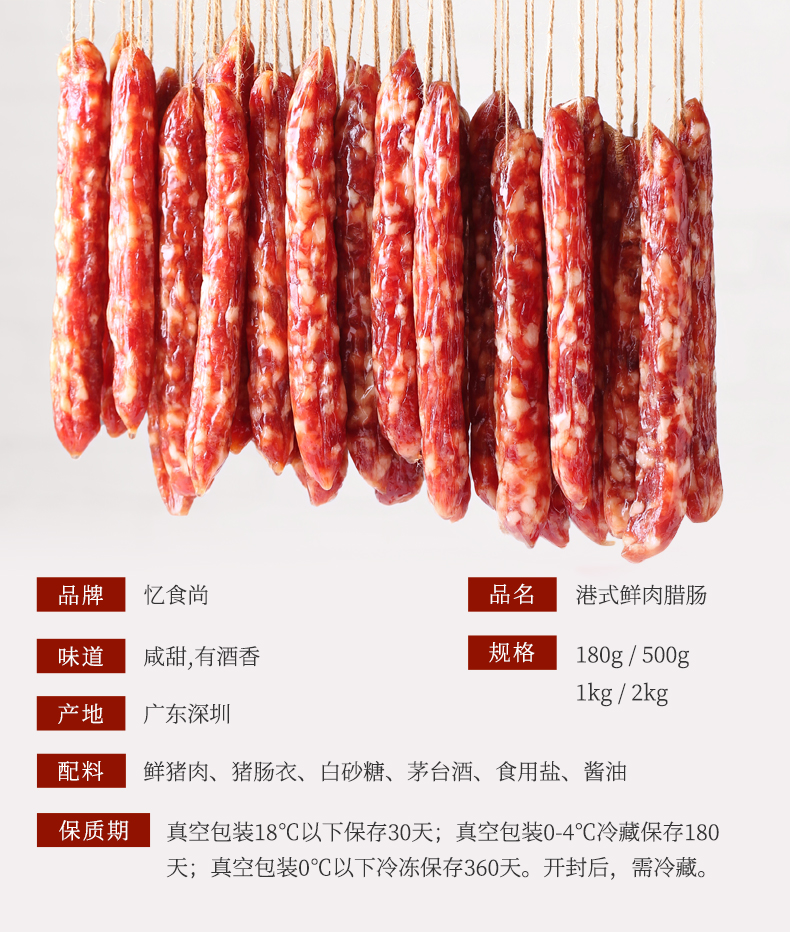 忆食尚  港式茅台鲜肉腊肠1kg (高档礼盒) 送礼佳品 商品图3