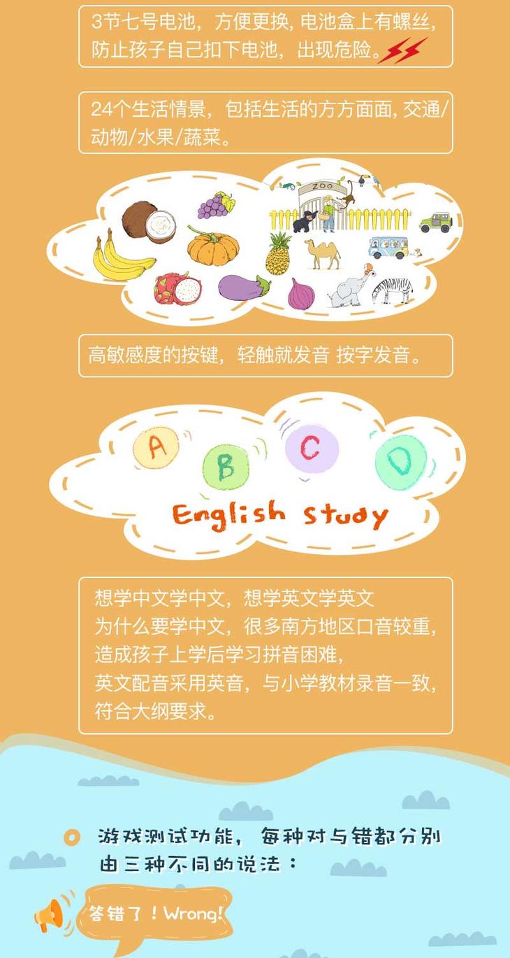 《手指点读英语发声大书》全1册 540个常用单词 赠单词索引指南 3岁以上