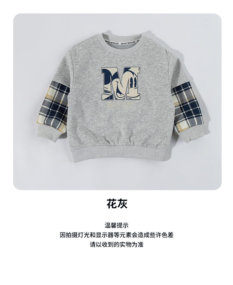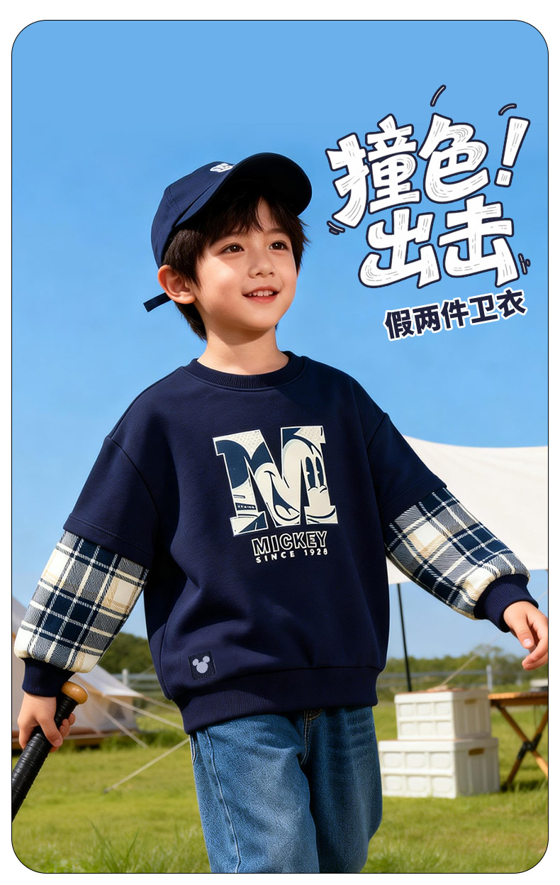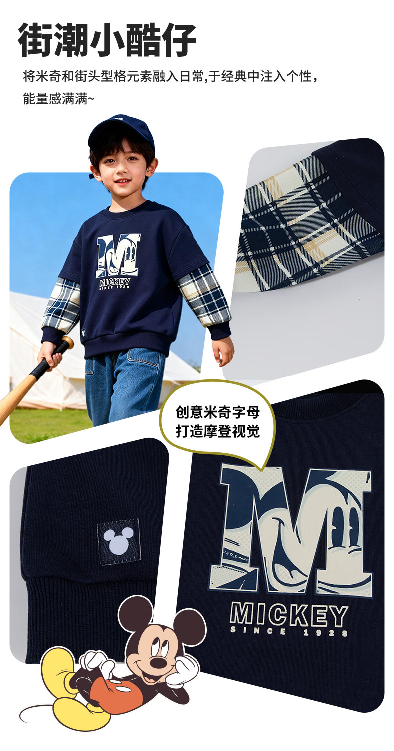 迪士尼(Disney)童装男童套头卫衣潮酷帅气运动休闲撞色假两件2026春季新款上衣ZD1FS043