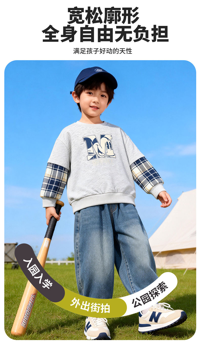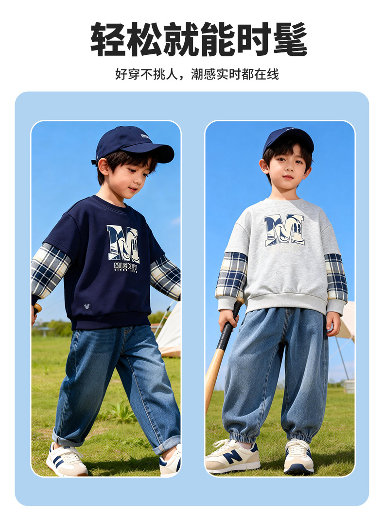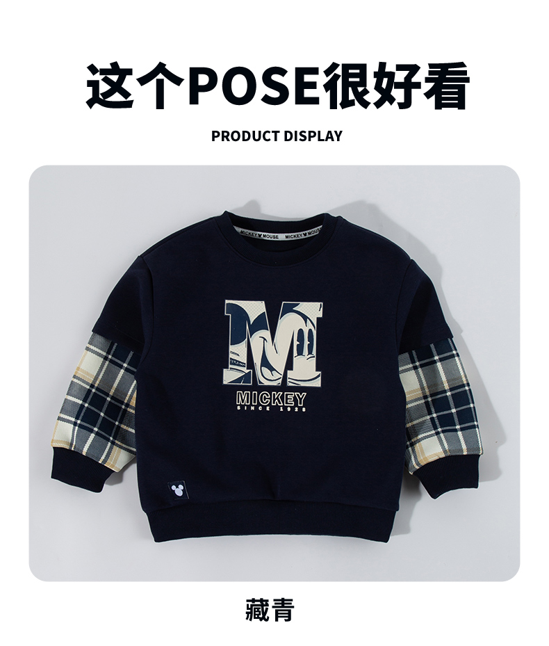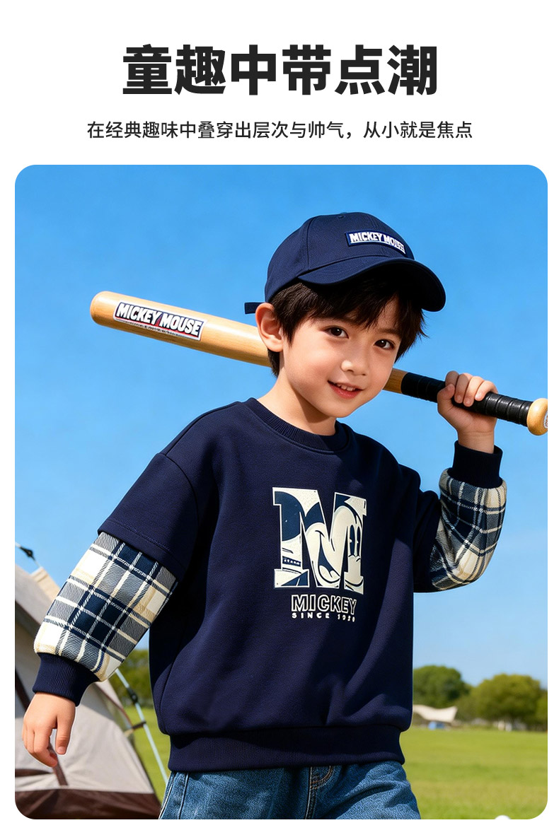 迪士尼(Disney)童装男童套头卫衣潮酷帅气运动休闲撞色假两件2026春季新款上衣ZD1FS043