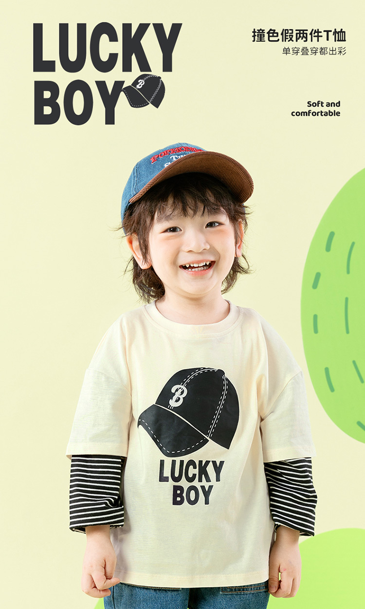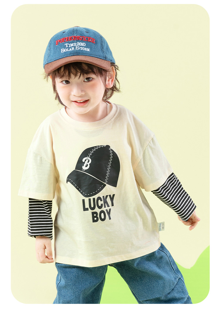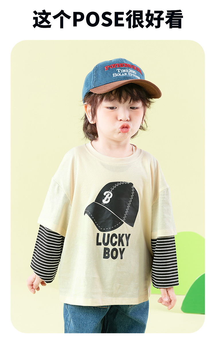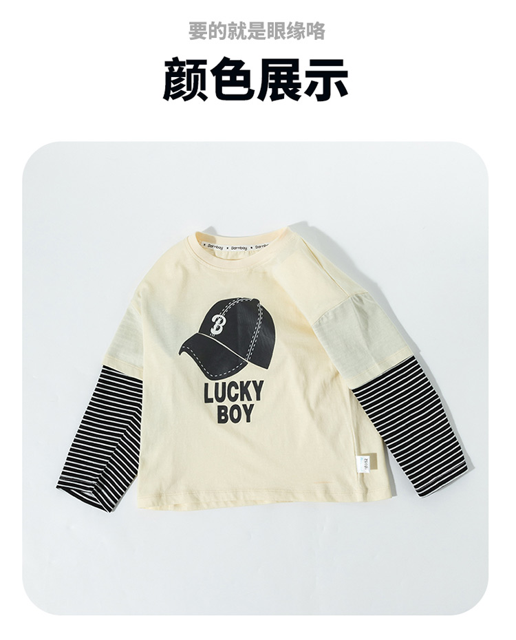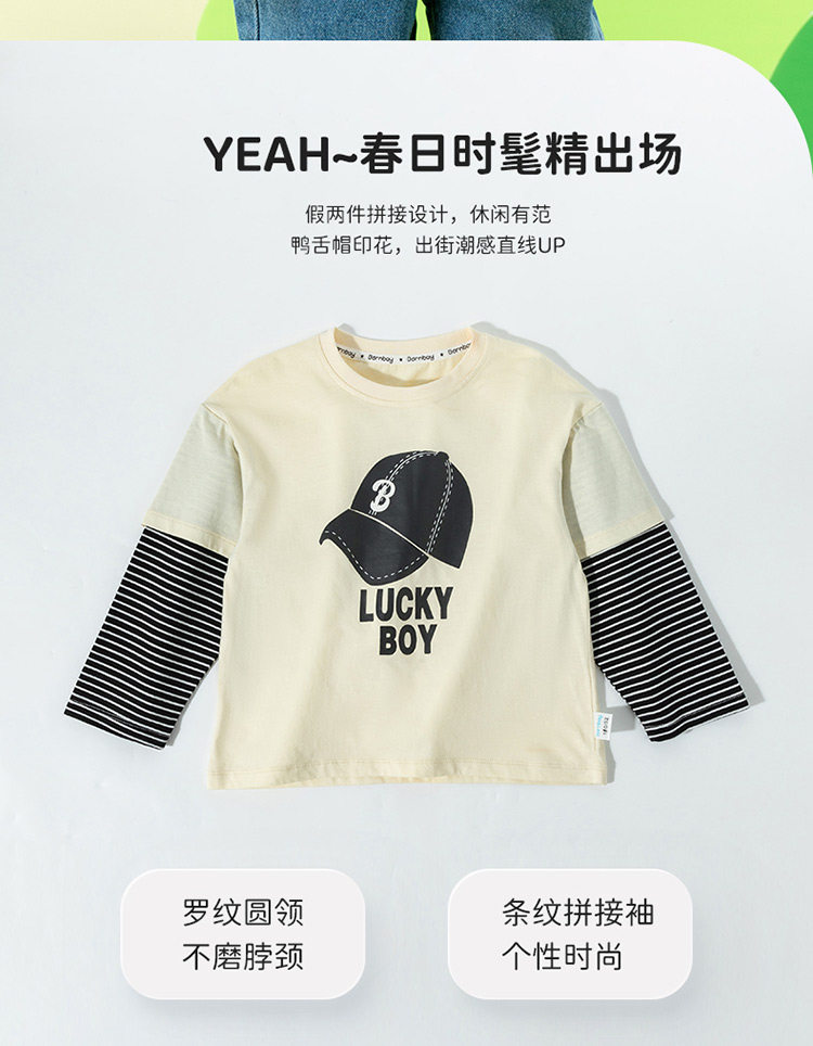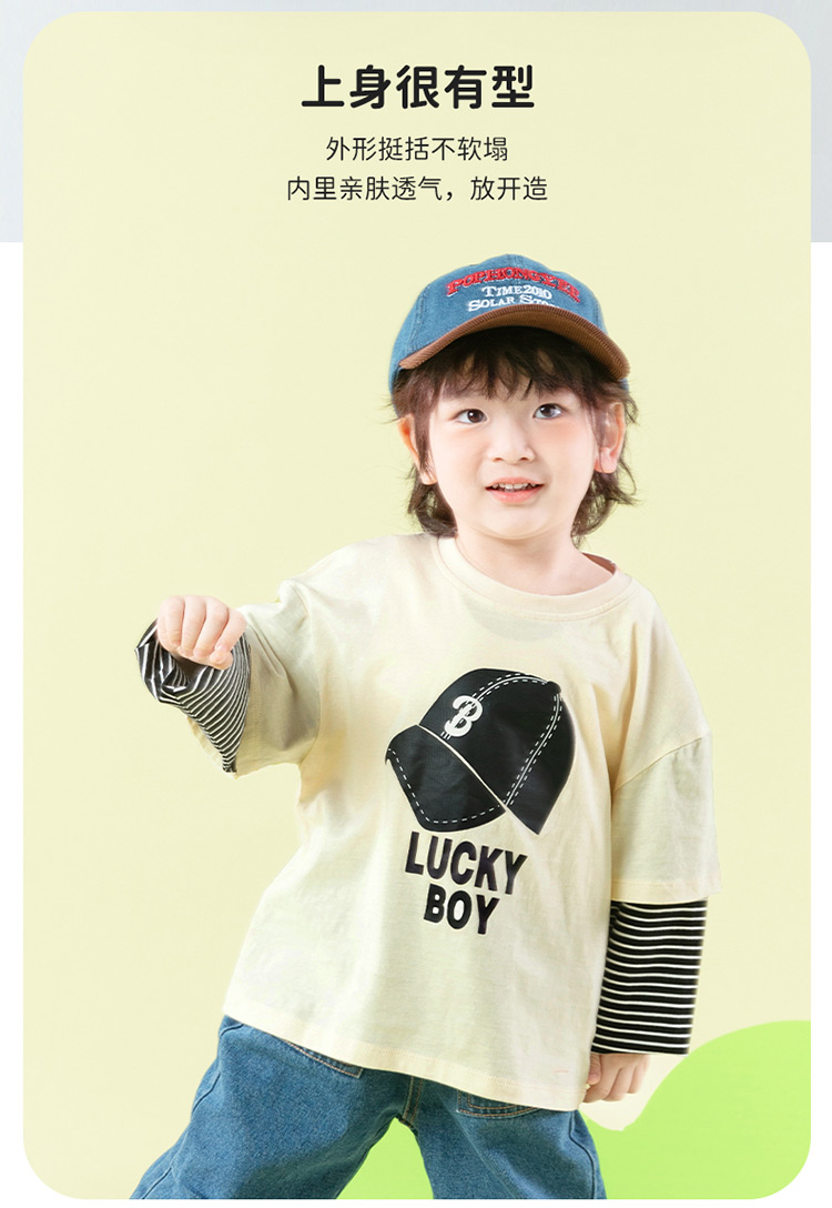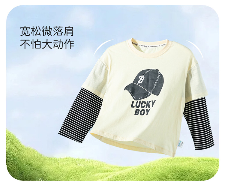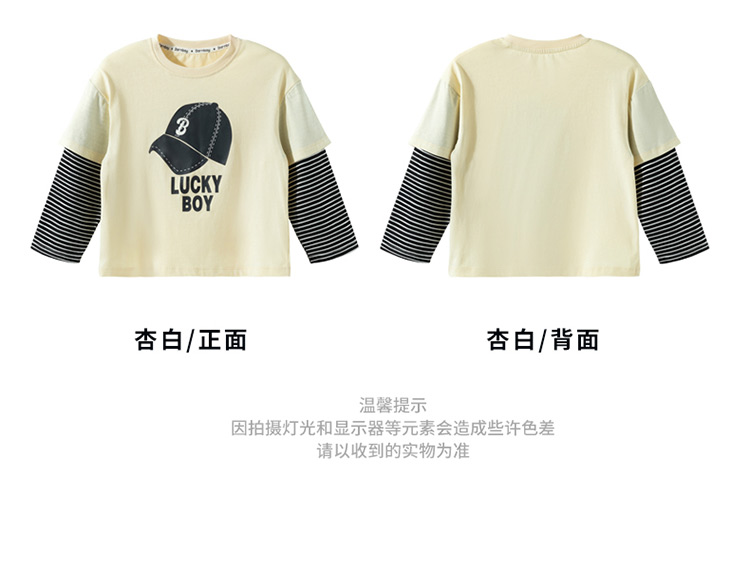 贝贝怡假两件长袖2025春季新款简约休闲时尚男童宝宝t恤上衣ZB1ES016