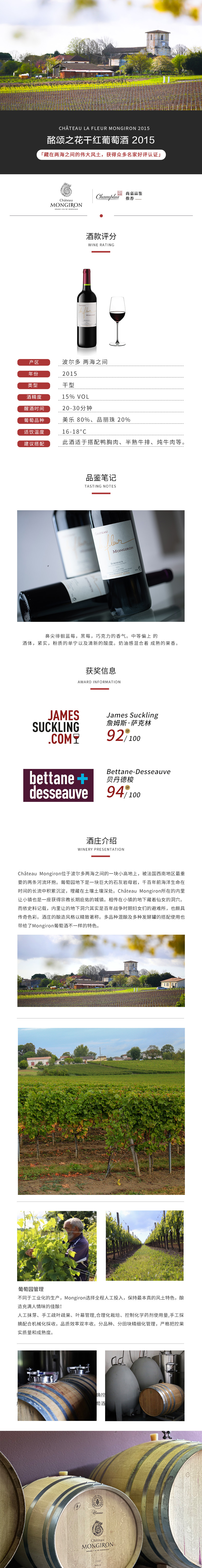 酩颂之花干红葡萄酒2015年La Fleur de Château Mongiron Rouge 2015