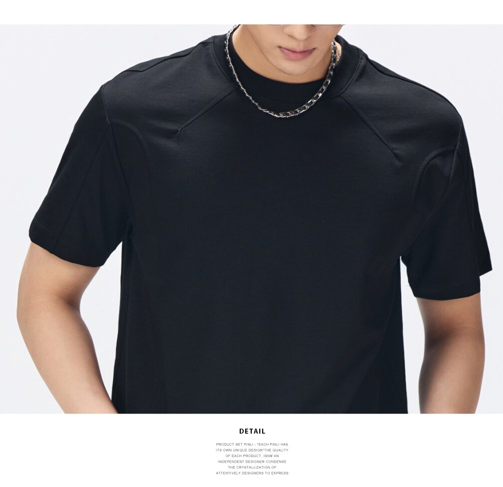 PINLI品立2026夏季新款男士纯色百搭圆领落肩袖短袖T恤上衣体恤潮GD262111040