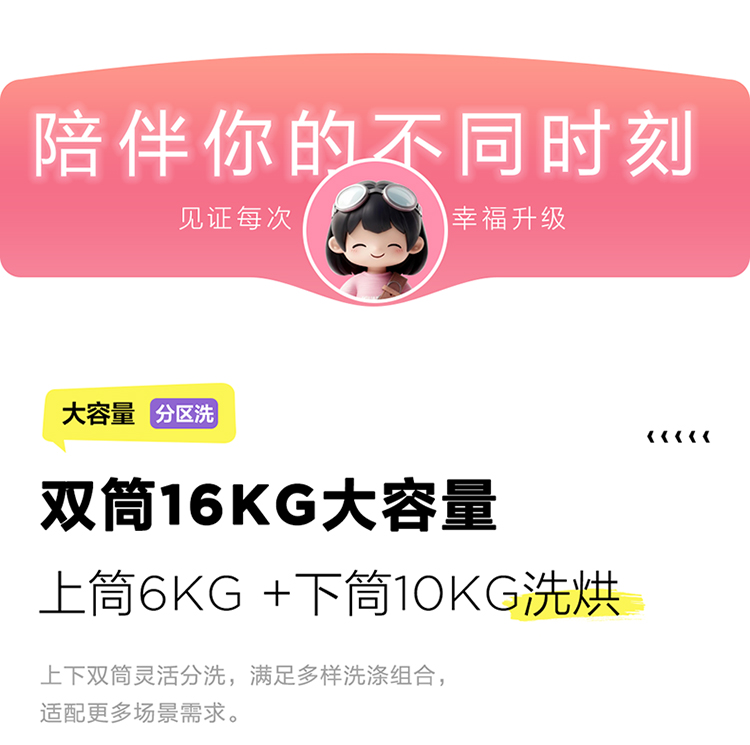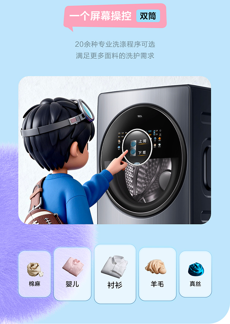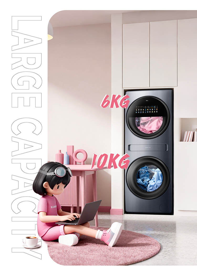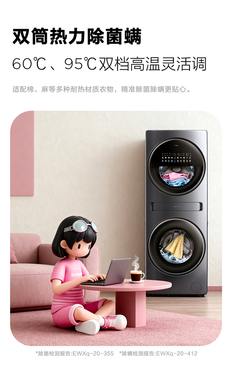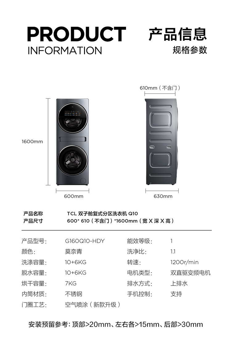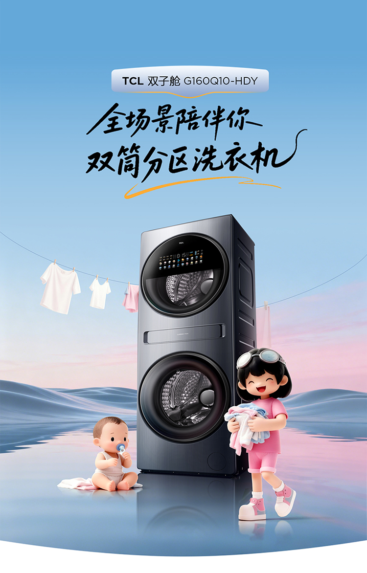 【TCL洗衣机】TCL双子舱Q10多筒分区双直驱智能投放大容量16公斤懒人洗衣机洗烘一体 G160Q10-HDY
