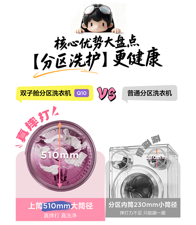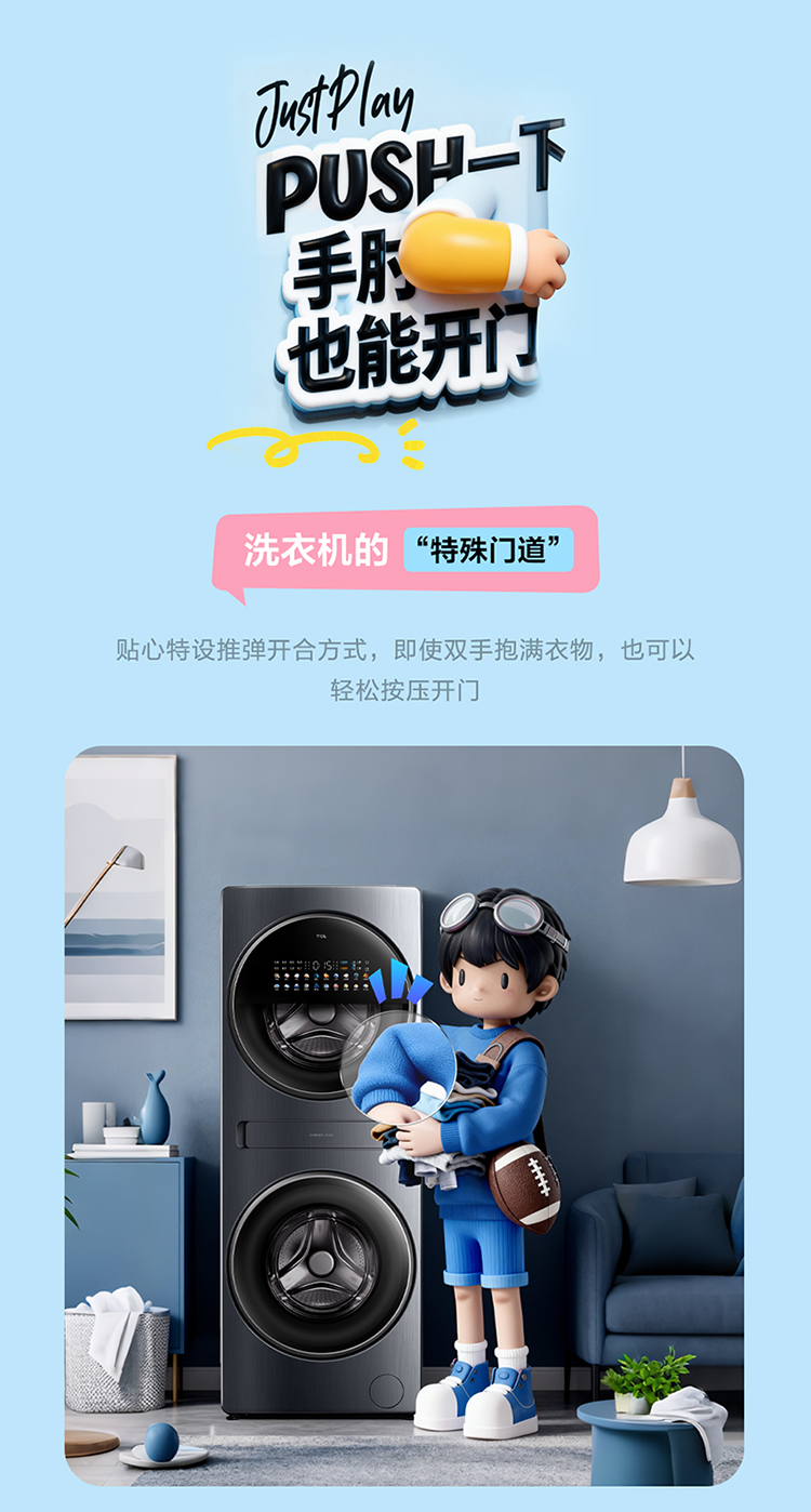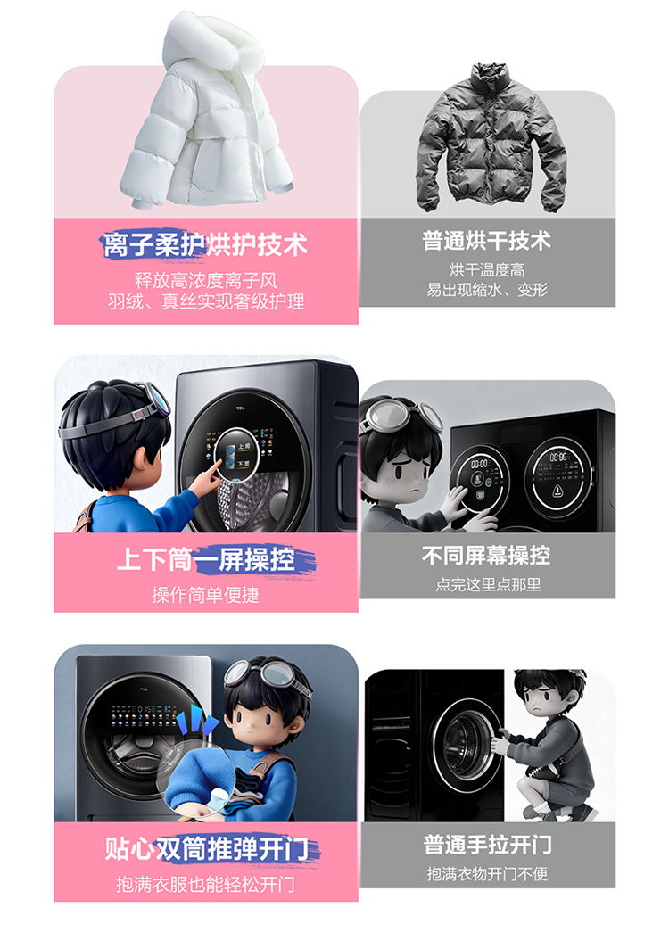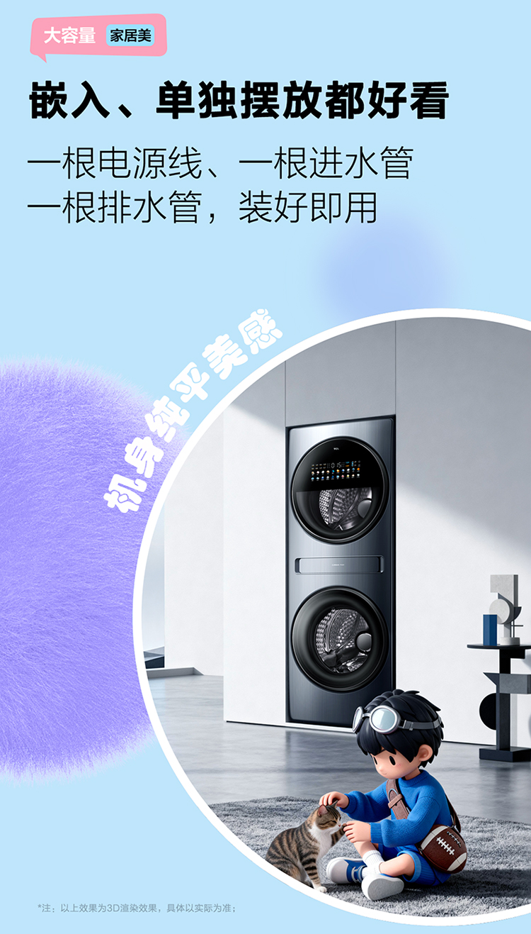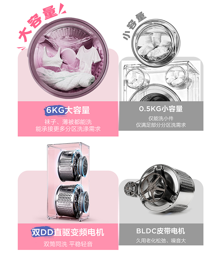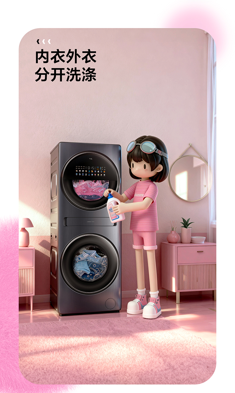 【TCL洗衣机】TCL双子舱Q10多筒分区双直驱智能投放大容量16公斤懒人洗衣机洗烘一体 G160Q10-HDY