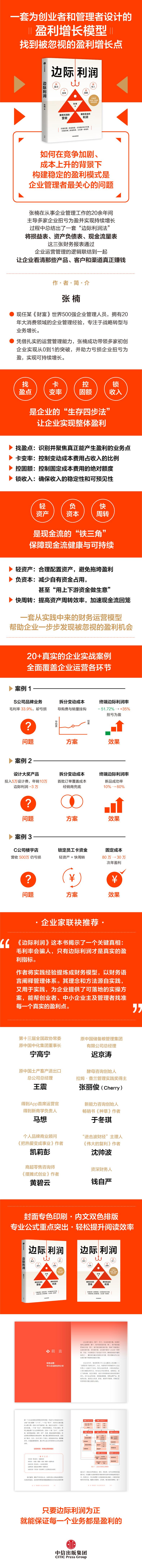如何在竞争加剧、成本上升的背景下构建稳定的盈利模式是企业管理者最关心的问题。《边际利润》 提供了一套系统化的运营解决方案,帮助企业精准掌控收入、成本和现金流,实现高效盈利与长期增长。 本书的核心理念是“边际利润”——企业经营的真实盈亏锚点。围绕这一概念,作者构建了一整套财务运营逻辑模型,从“找盈点、卡变率、降固额、锁收入”到 “轻资产、负资本、快周转”,层层递进地剖析企业盈利的底层逻辑,助力中小企业摆脱低效运营,迈向精细化管理。 本书不仅提供了一套完整的财务运营框架,还结合大量实战案例,深入解析如何在实际经营中应用“边际利润法则”,解决企业在价格管理、成本控制、现金流优化、资产配置、周转效率等方面的关键问题,帮助中小企业主、部门一把手、财务负责人,以及希望提升财务管理能力的创业者、职业经理人找到可落地的经营策略,摆脱盲目扩张的陷阱,实现“精细化运营、持续盈利” 的商业目标。