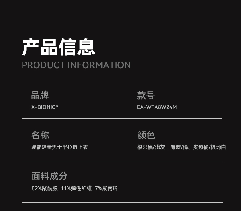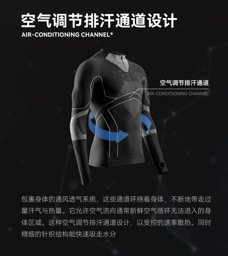X-BIONIC 聚能轻量男士半拉链上衣 控温保暖速干运动户外上衣 EA-WTA8W24M