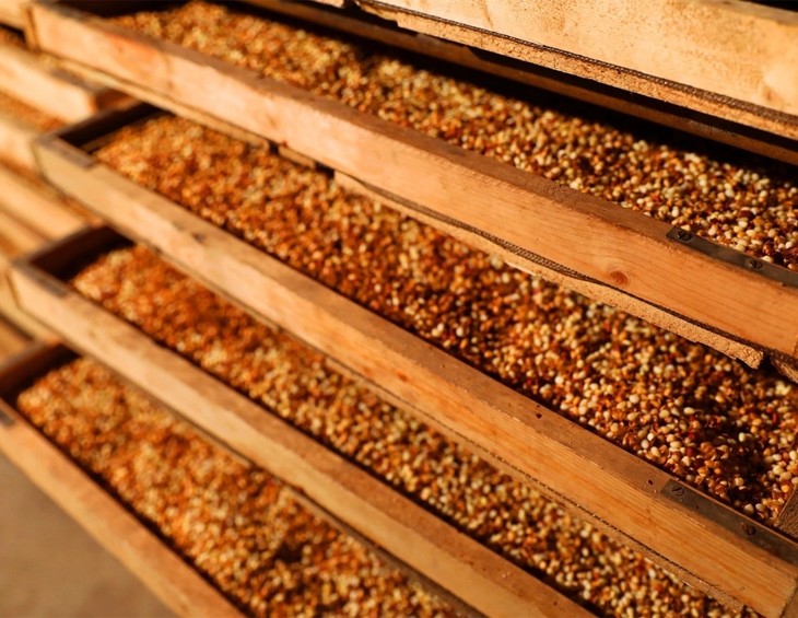 得到松仁后开始烘干,新鲜的松仁含有水分,烘干水分可以长久保存。烘干松仁是低温水循环加热,温度45-60度之间。