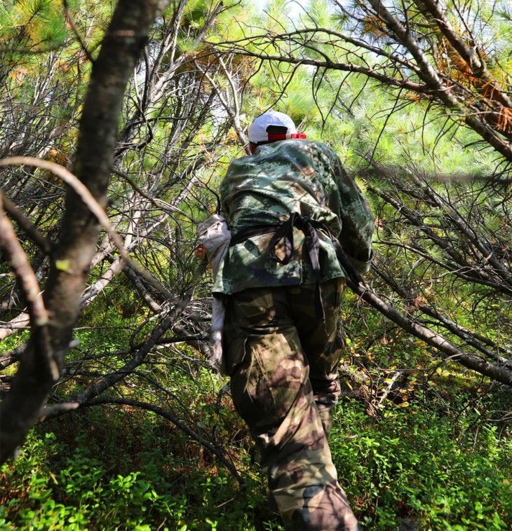 采山人进山要骑行40公里以上,之后步行一整天寻找采集偃松果。傍晚,再把松果背下山驮回家。