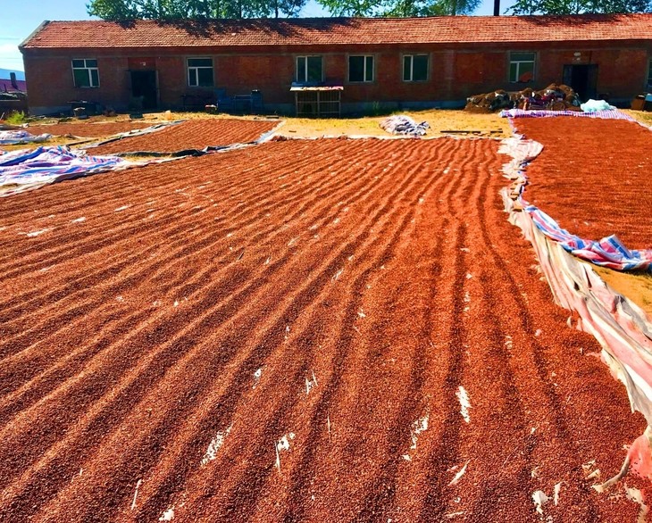 偃松脱粒完成,下一步是晾晒。刚刚脱粒好的松子还有很多水分,晾晒干燥后才可以加工松仁,这是重要的一个环节。晾晒阶段遇到好天气,真是幸运。