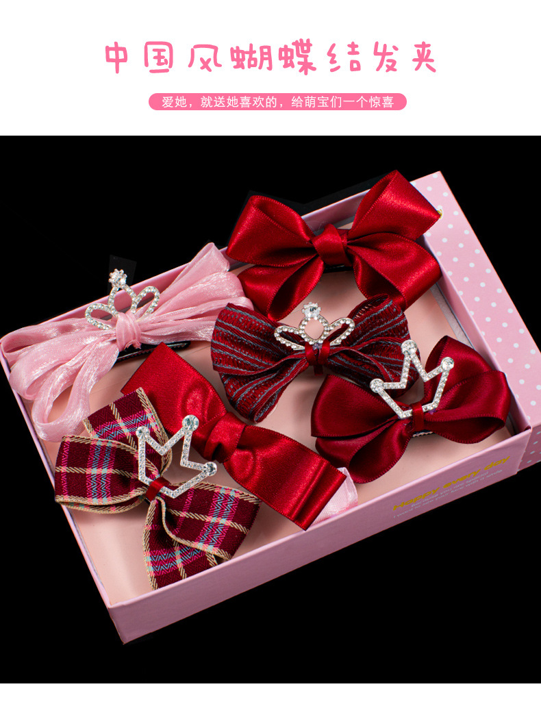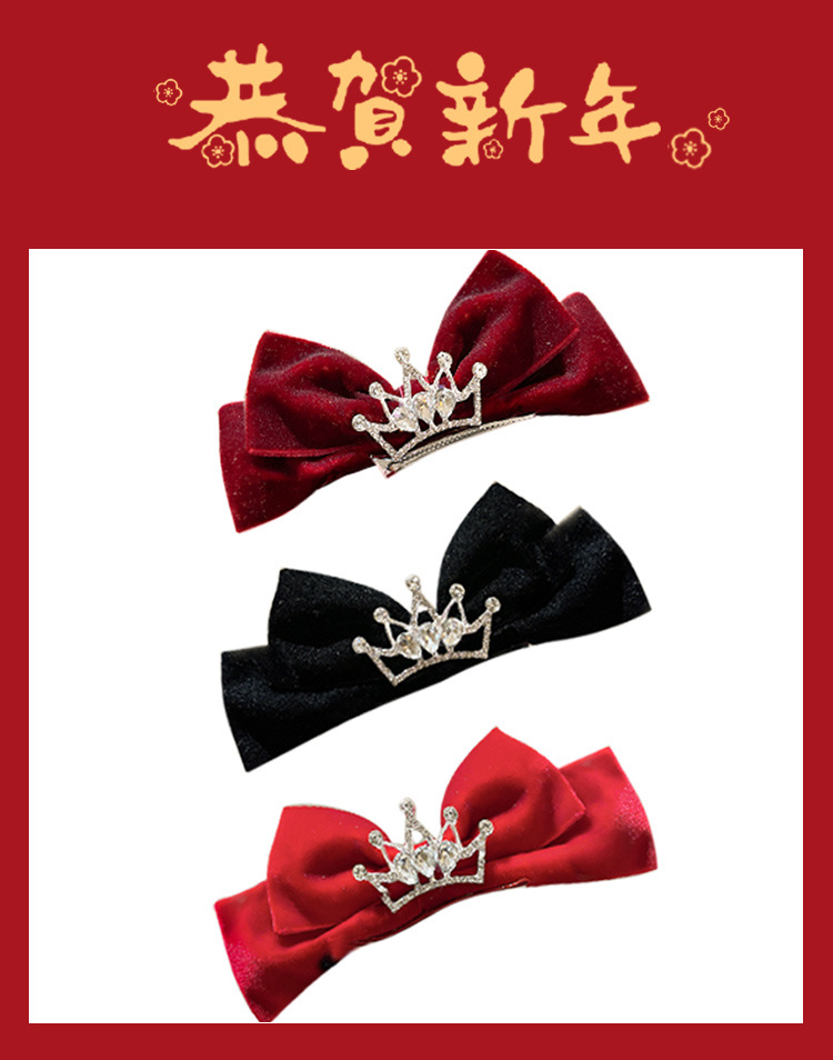 【新年热卖款蝴蝶结发夹 可爱不伤发】儿童新款皇冠蝴蝶结发夹小女孩新年发饰公主发卡夹子宝宝新款头饰