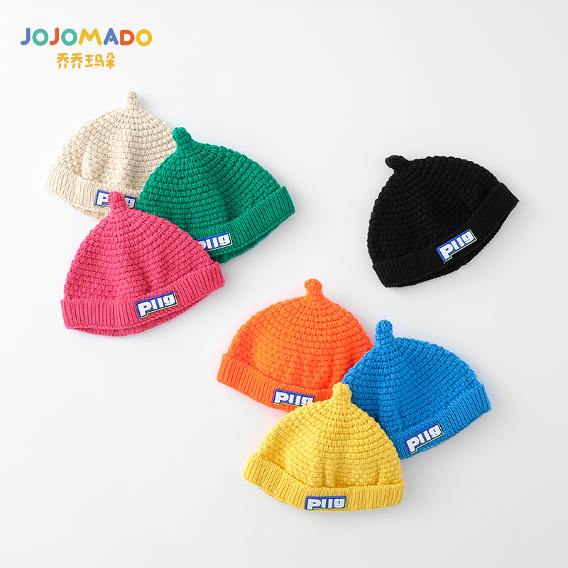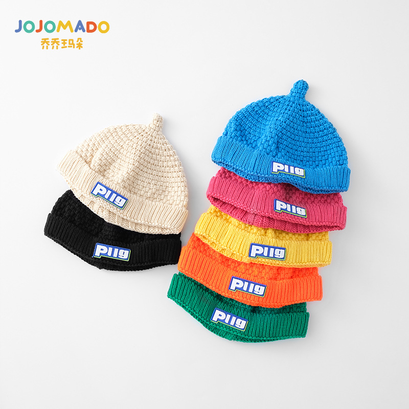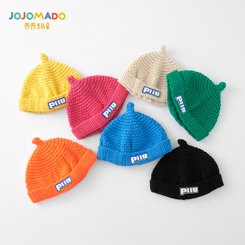 秋冬新款韩版糖果色字母宝宝毛线针织帽奶嘴婴儿帽子超萌儿童帽子