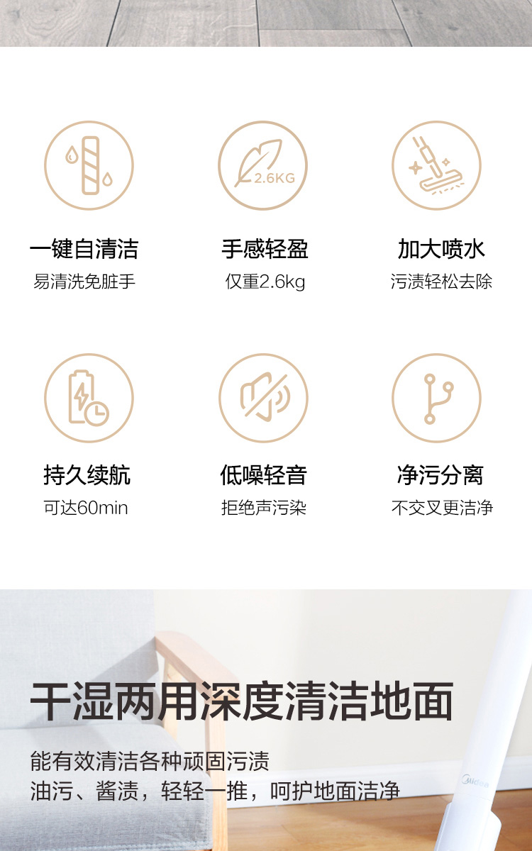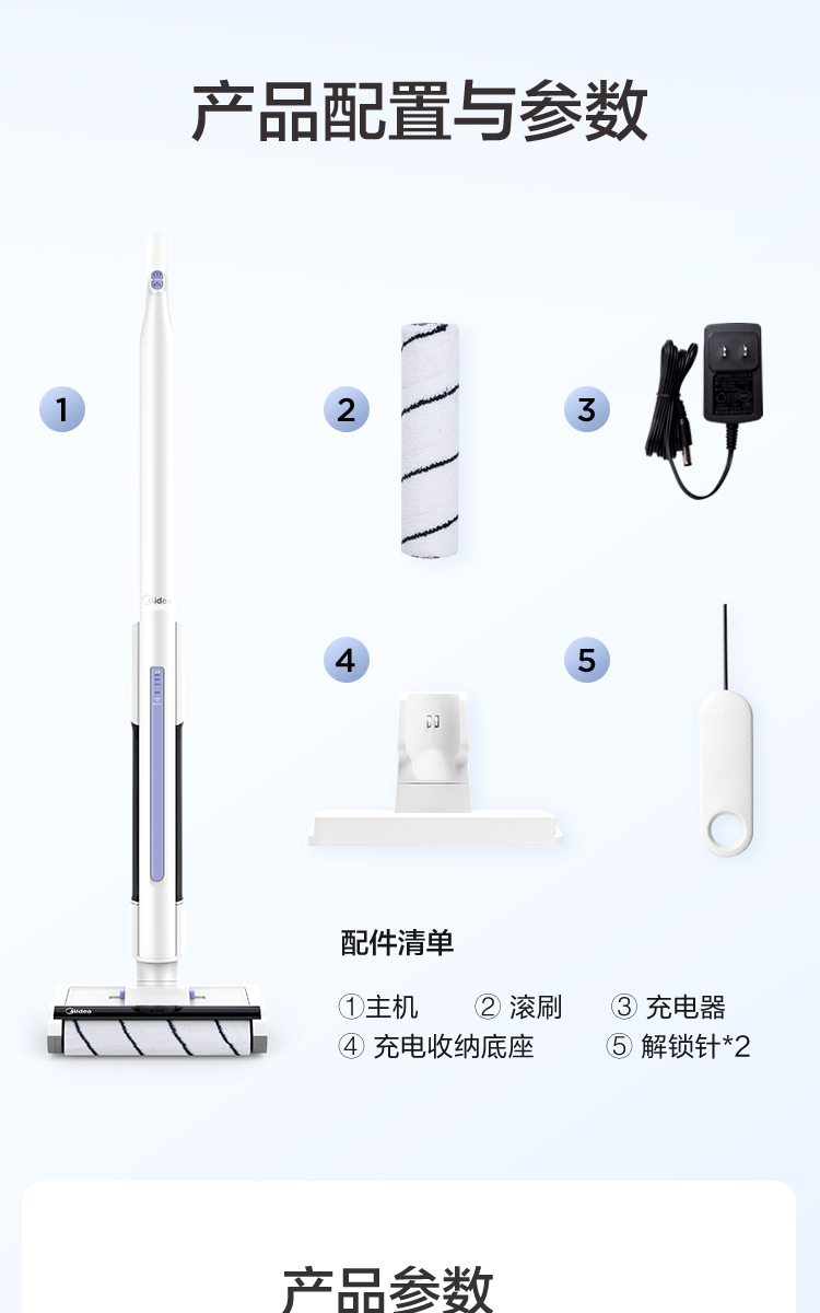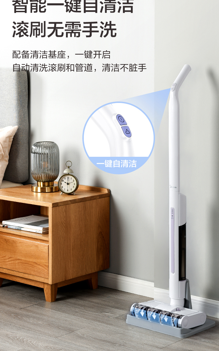 美的(Midea)电动洗地拖把洗地机家用无线手持智能洗拖一体自清洁洗地机器人WD10 紫丁香