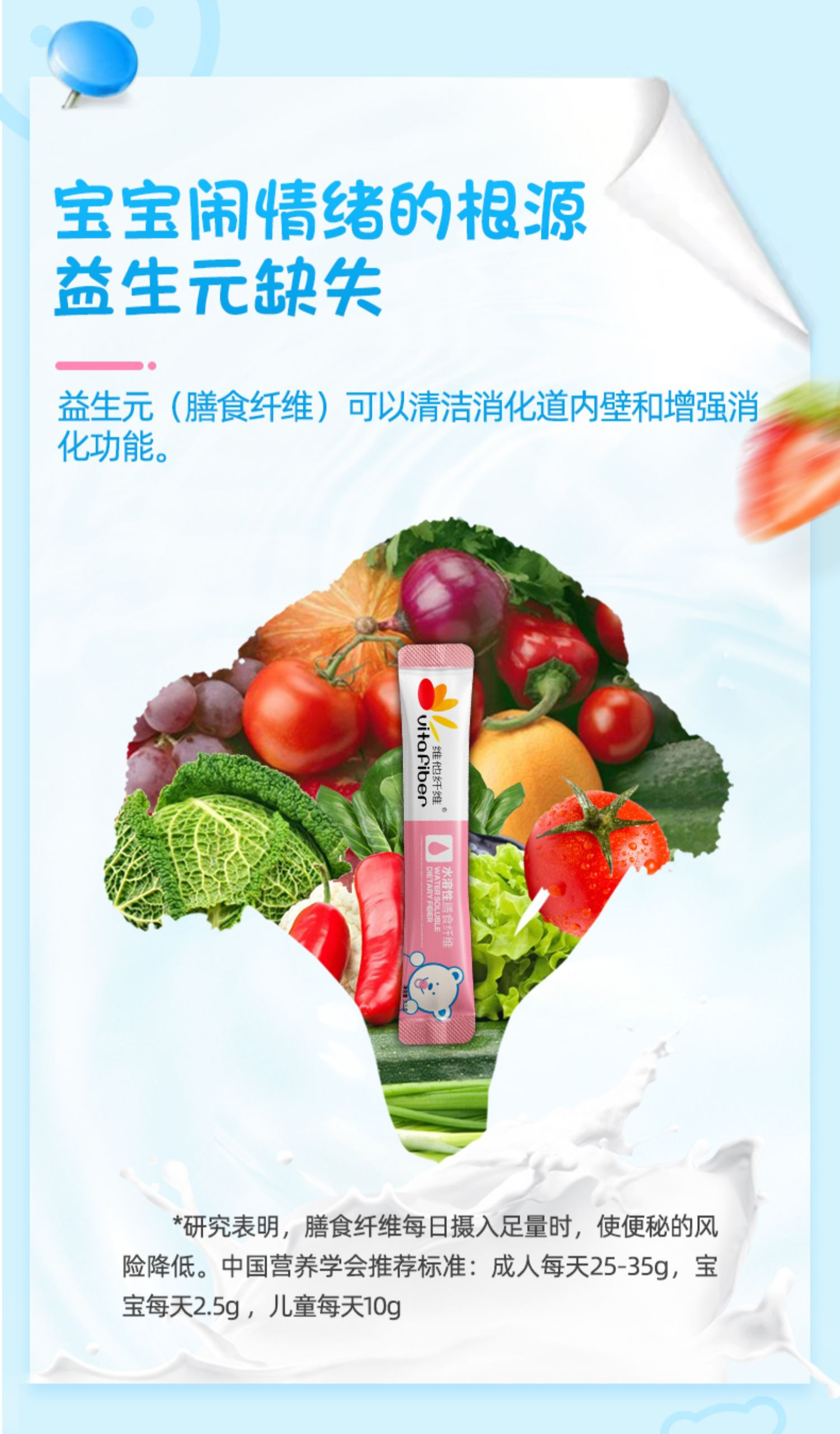 维他纤维益生元菌水溶性儿童膳食纤维素奶粉伴侣肠道儿童调理小孩