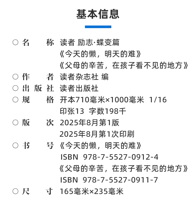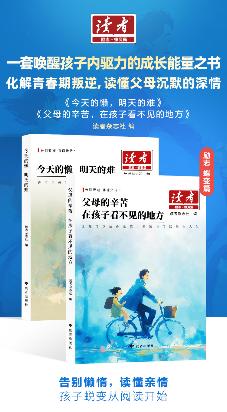 《今天的懒 明天的难》、《父母的辛苦 在孩子看不见的地方》 读者励志丛书·蝶变篇 2025年全新系列 读者杂志社/编