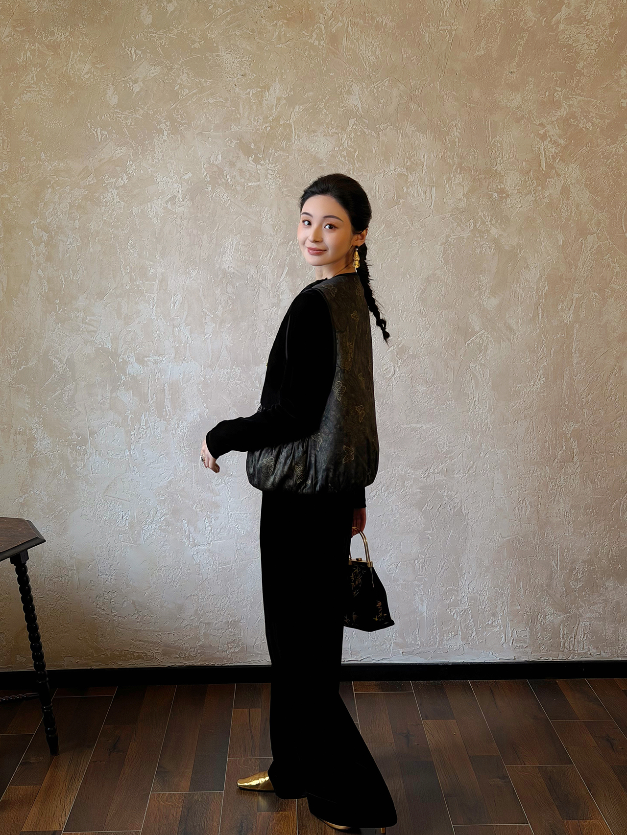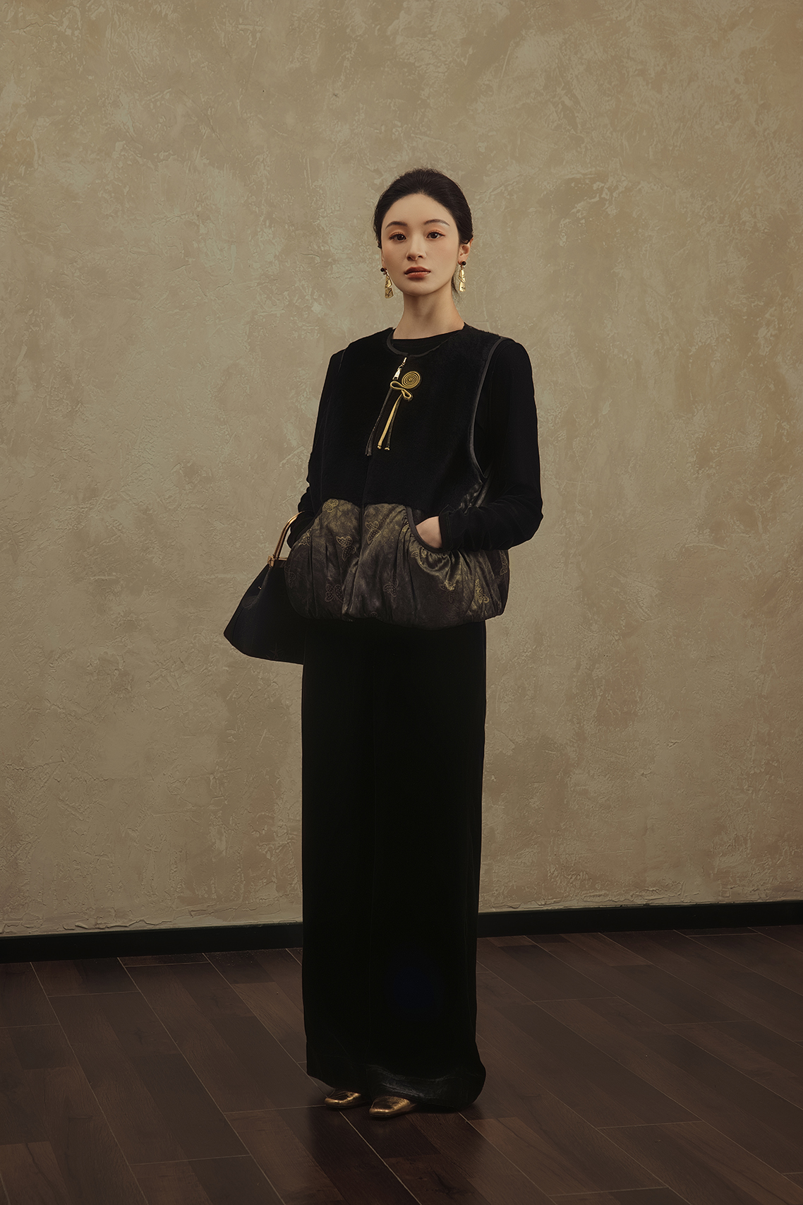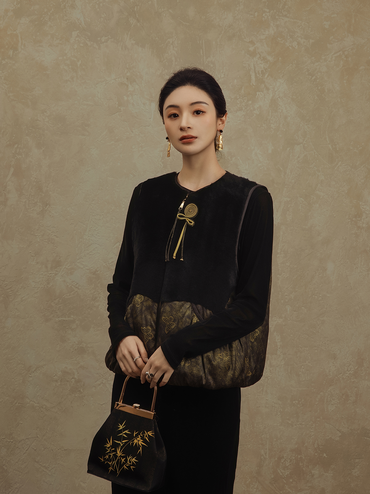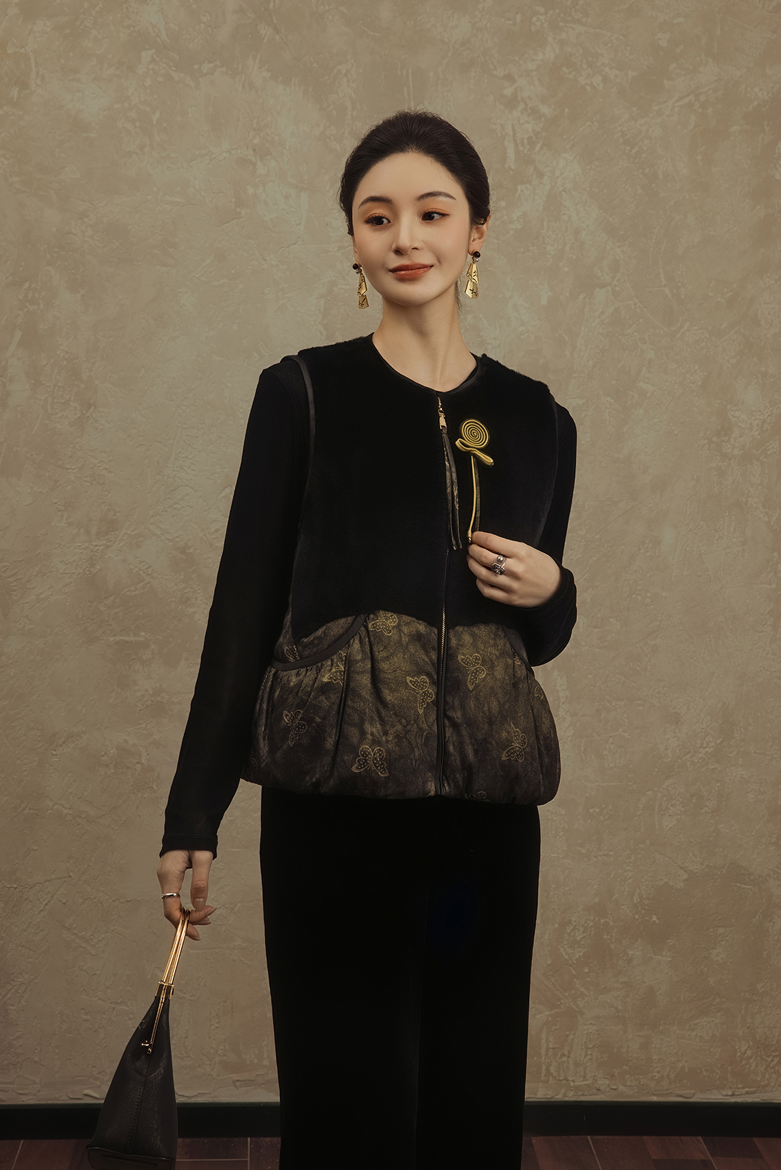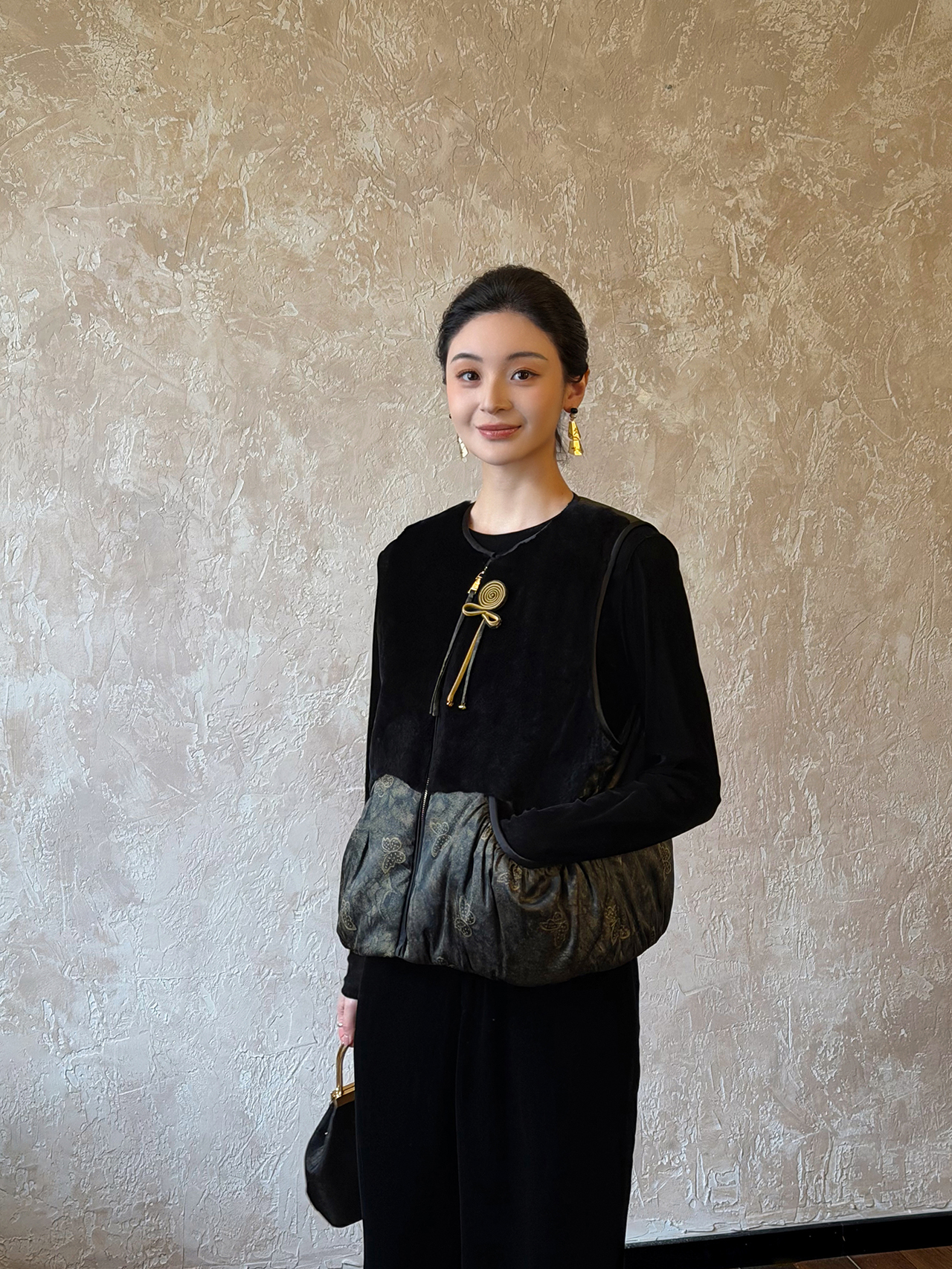 盛唐婧 | 轻奢老钱风香云纱拼羊毛马甲