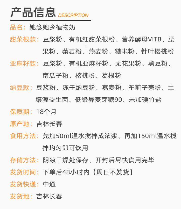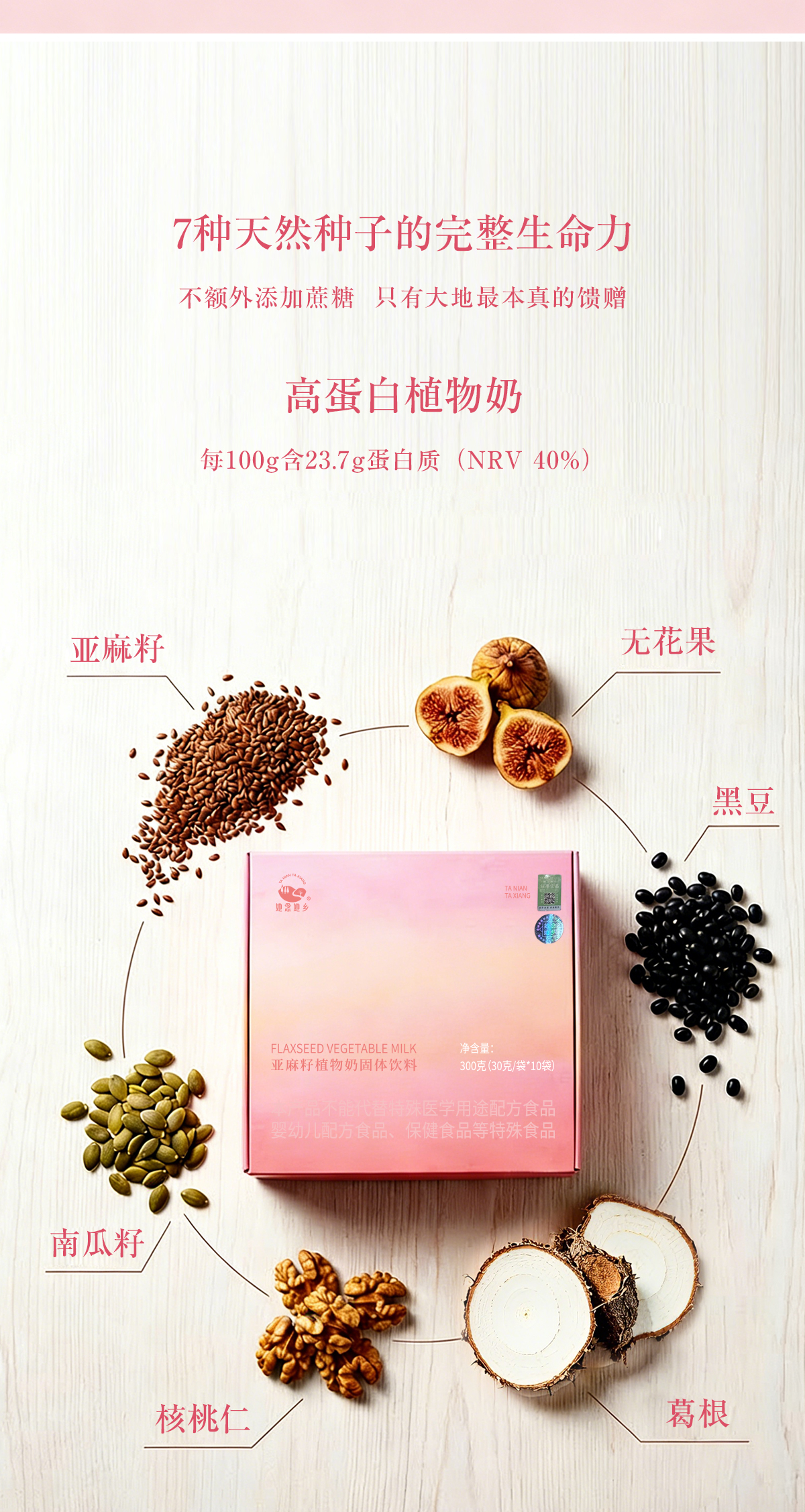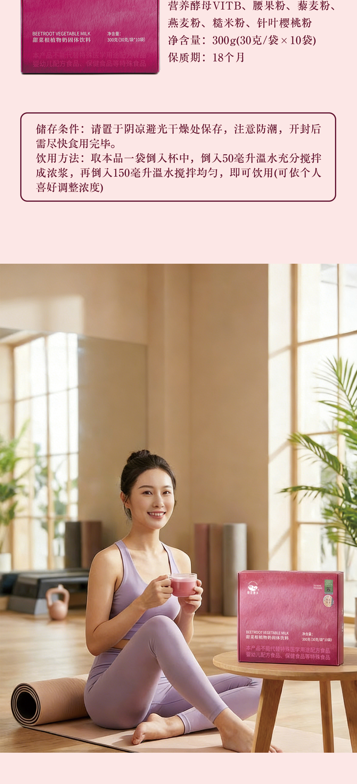 她念她乡 甜菜根/亚麻籽/纳豆 植物奶粉 300g/盒【30g*10袋】