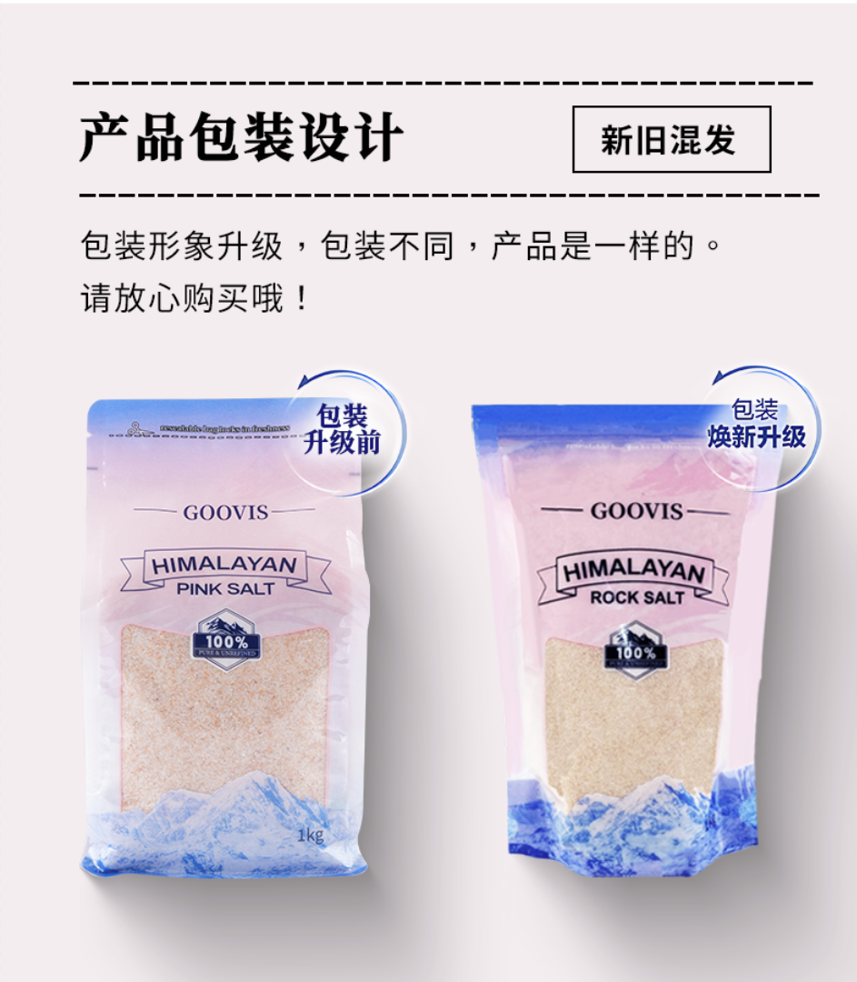 【买1赠1、多买多赠、赠同款粉盐】GOOVIS 喜马拉雅粉盐 天然矿物岩盐食用盐浴盐不加碘 1kg/袋
