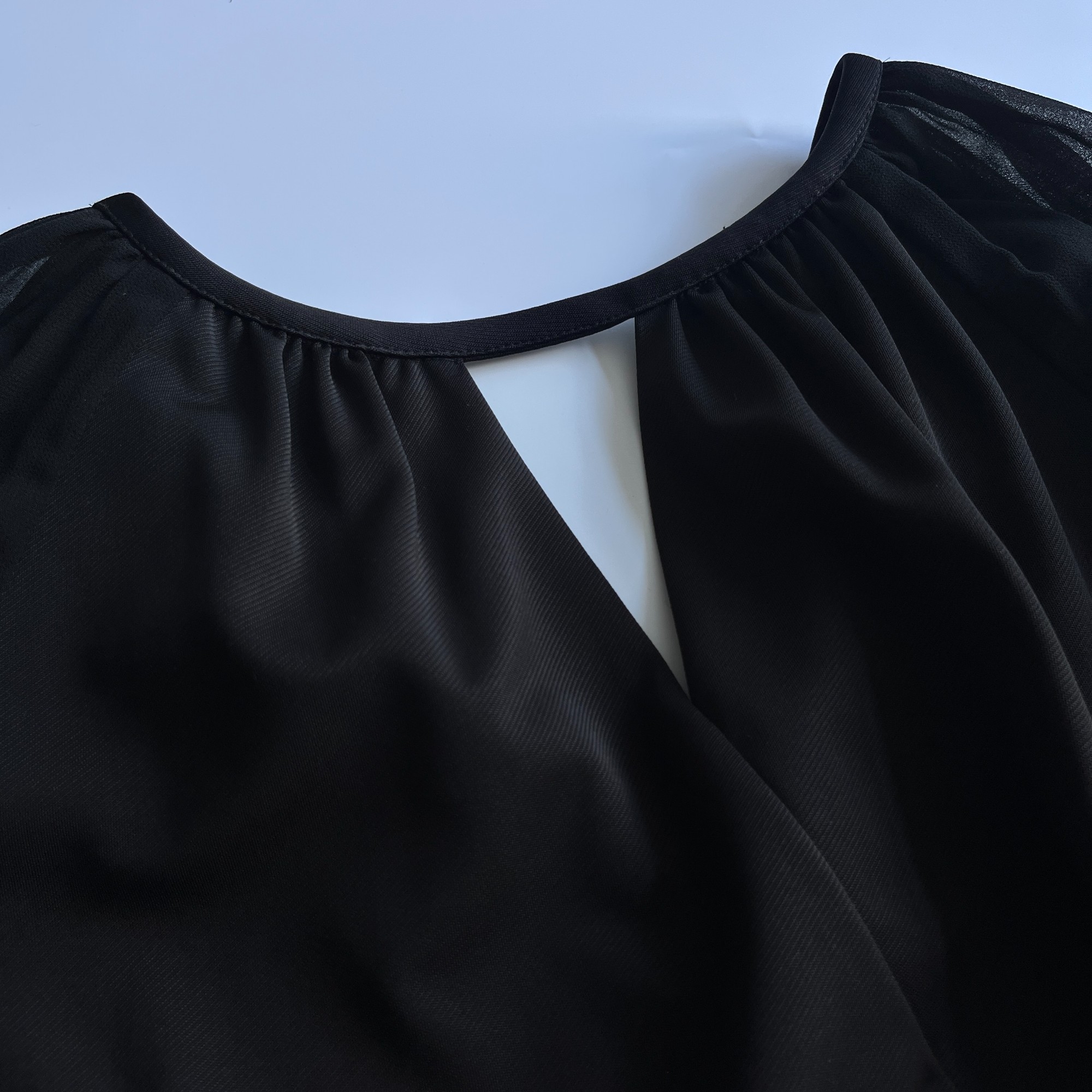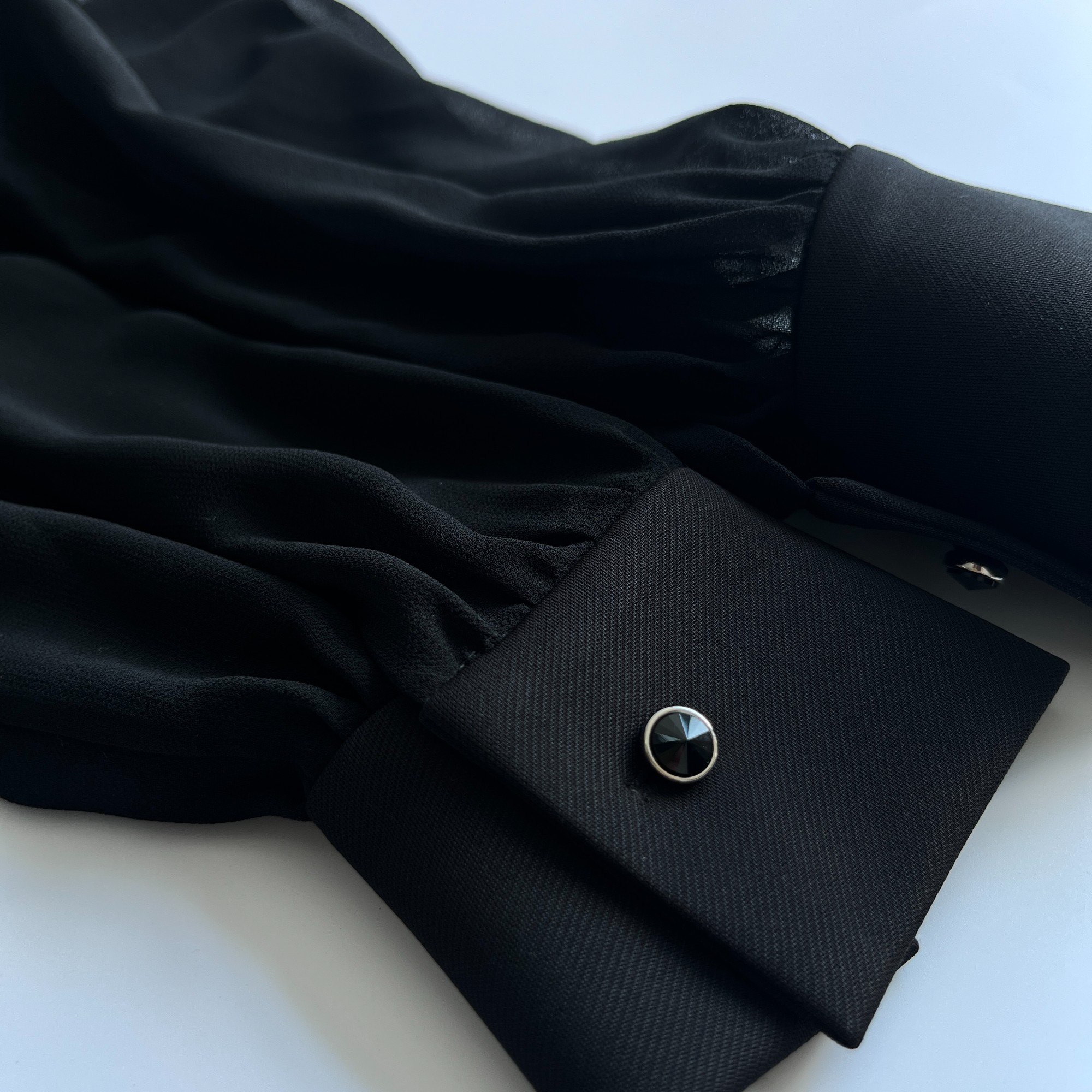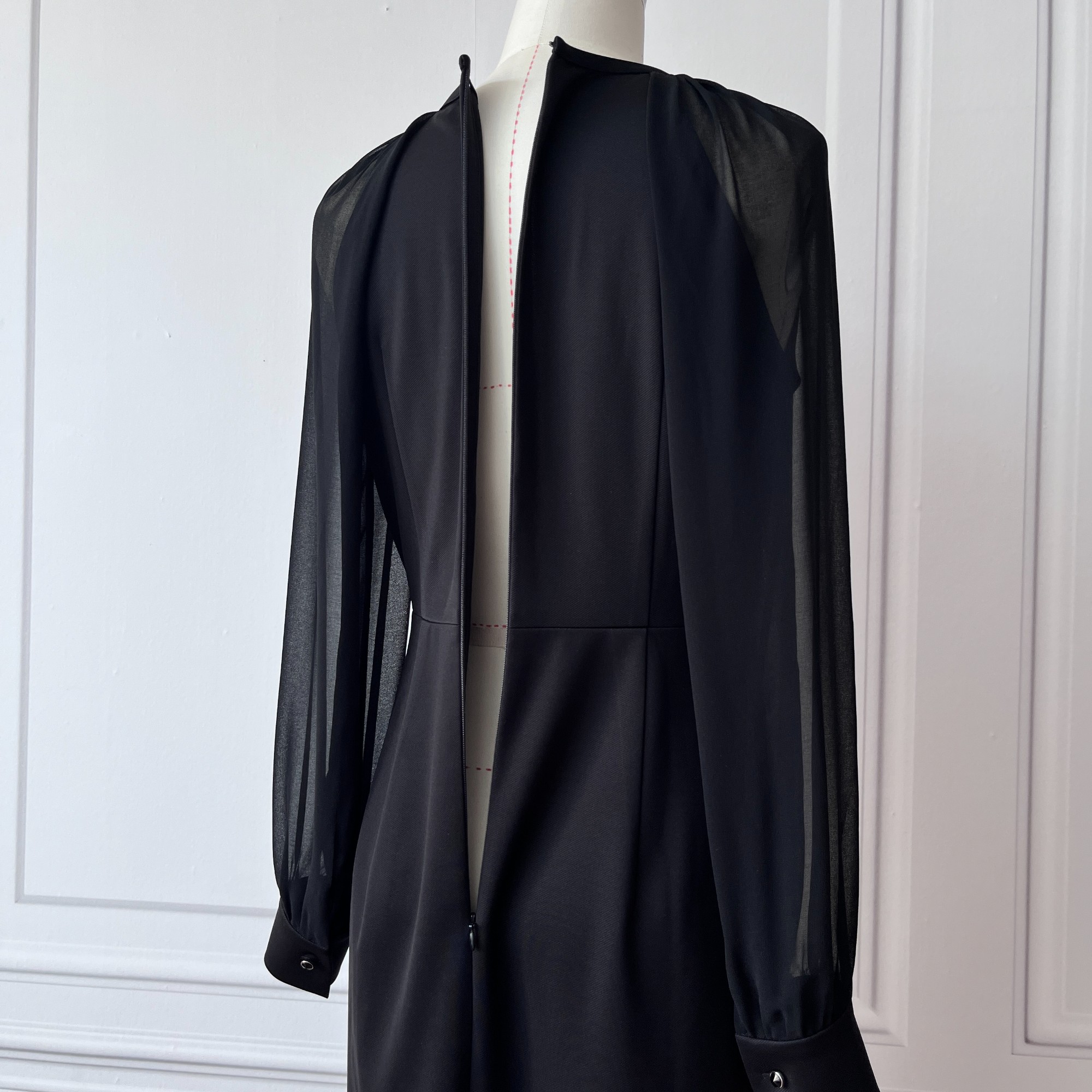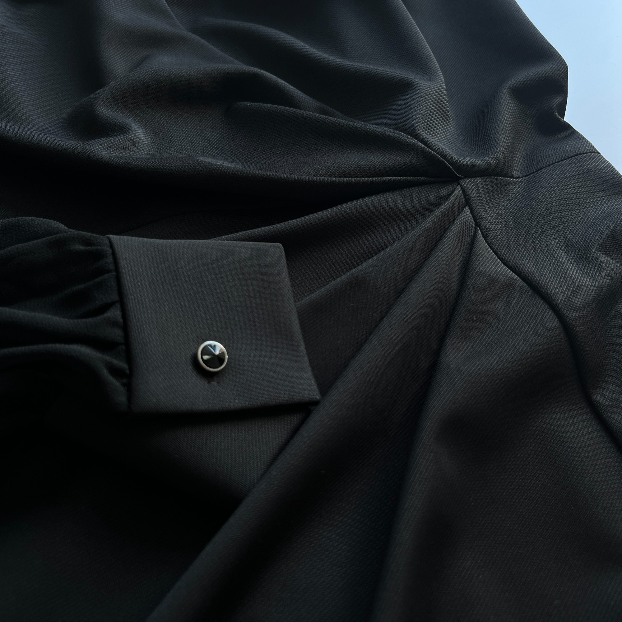 浪漫邂逅—法式褶皱塑身X型长袖显瘦连衣裙气质黑色女神裙2301002