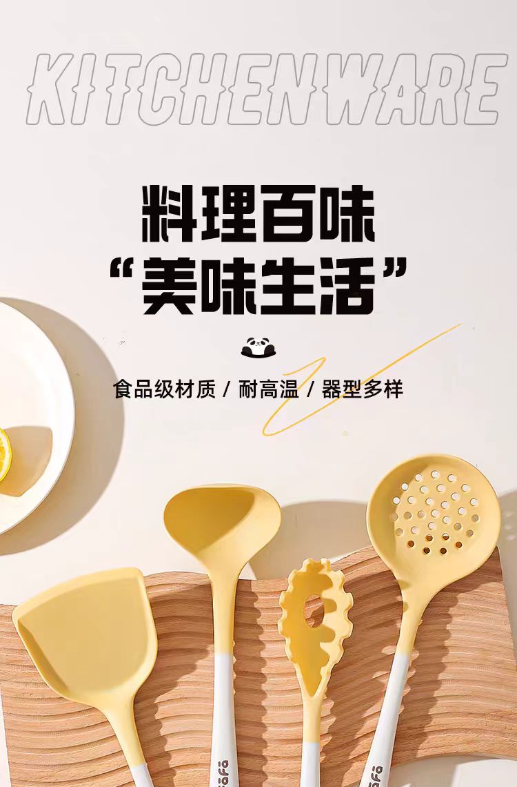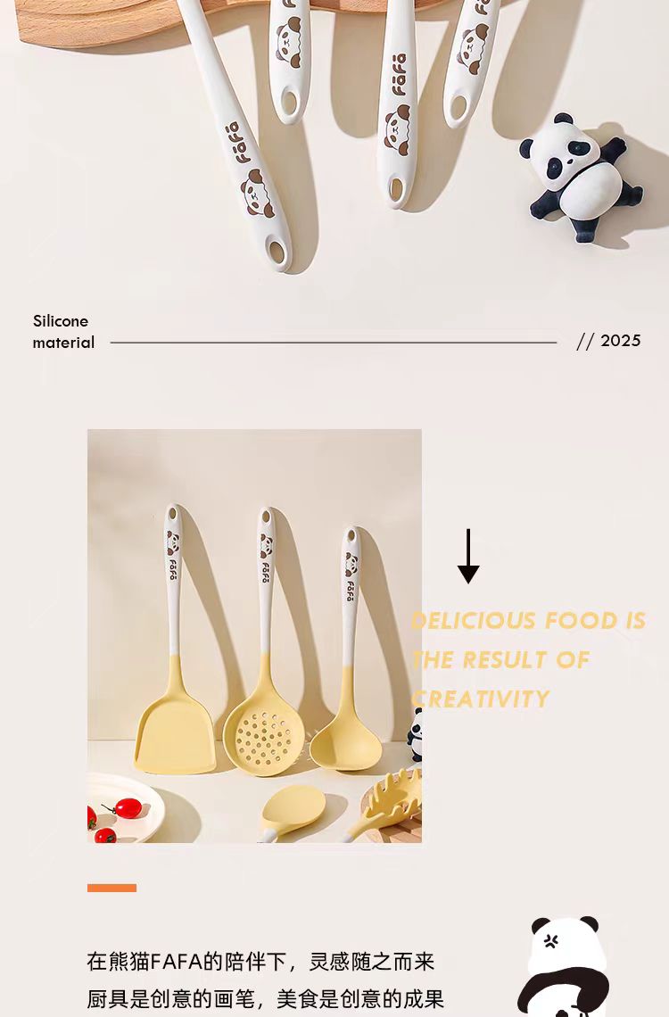 4楼Eubelle欧蓓 川岛屋熊猫硅胶锅铲不粘锅用 炒菜铲子/汤勺/捞面漏勺/饭勺/厨具套装 活动价:12.8-27.8元