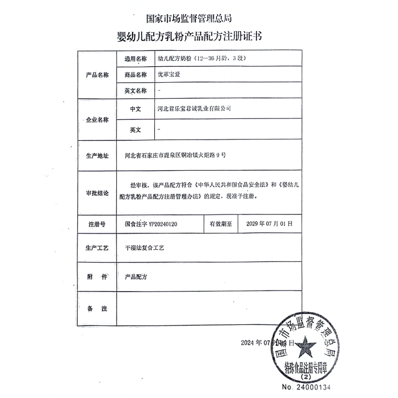 君乐宝优萃宝爱奶粉3段800g(新旧包装随机发货)