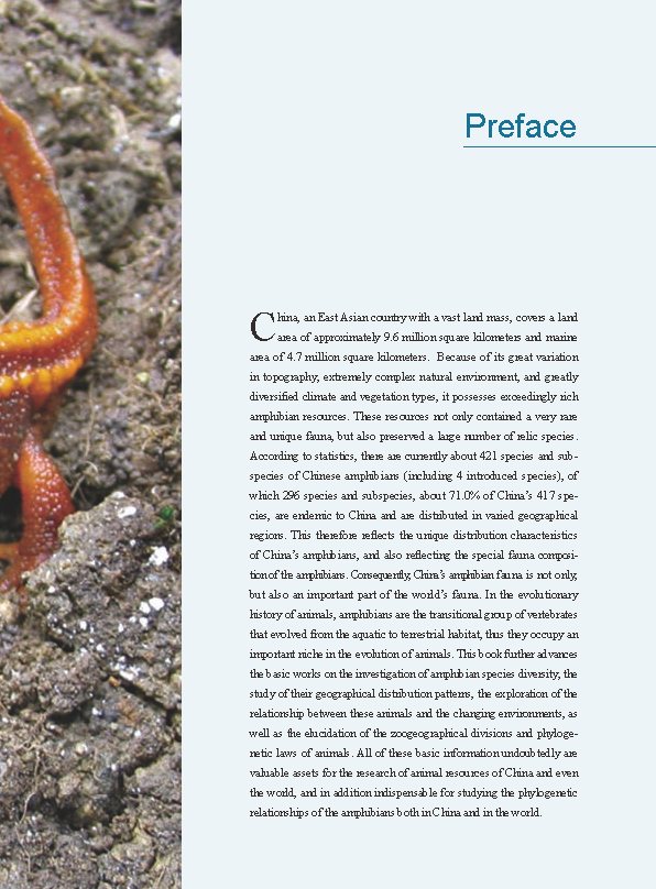 该书是一部学术巨著,内容丰富、信息翔实,图文并茂,适用于科研机构研究人员、大中专院校学生、农林牧技术人员,以及珍稀濒危动物保护与管理部门工作人员和两栖动物爱好者;同时,也可作为…、商检等部门的参考资料。
