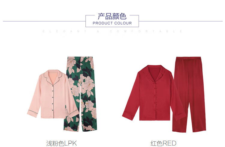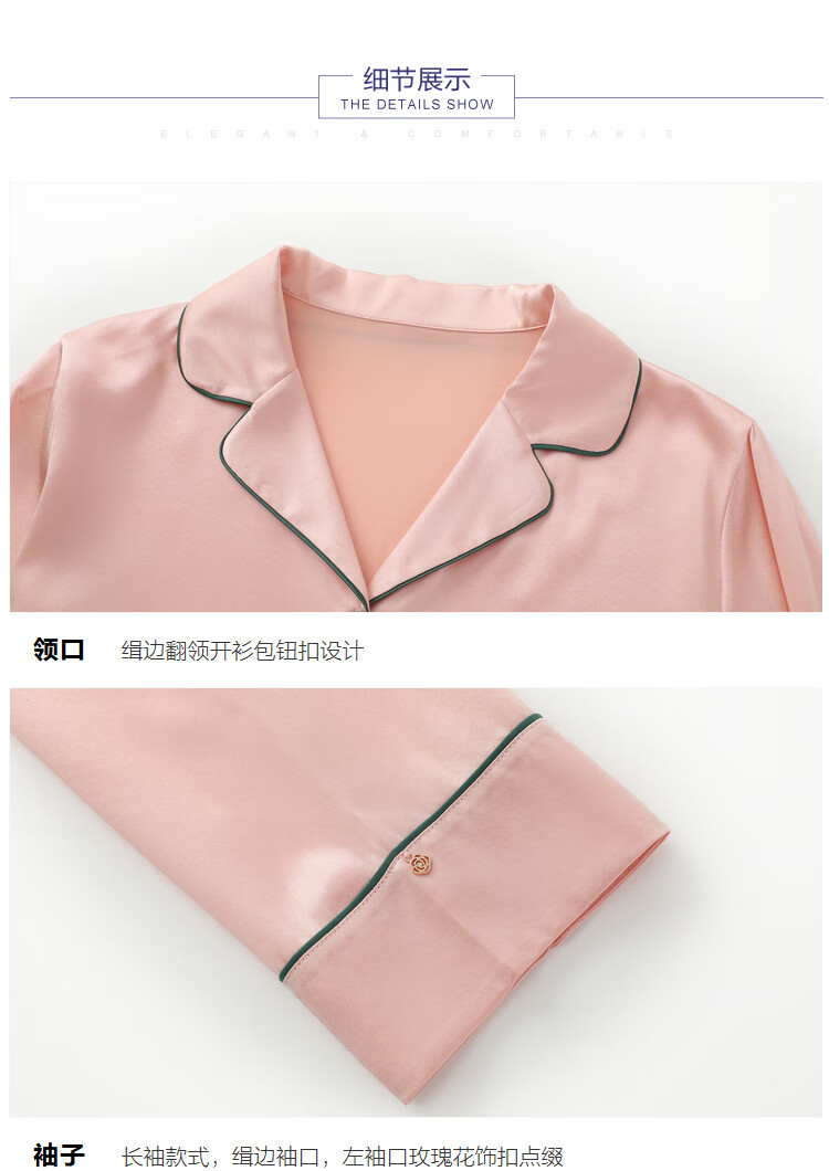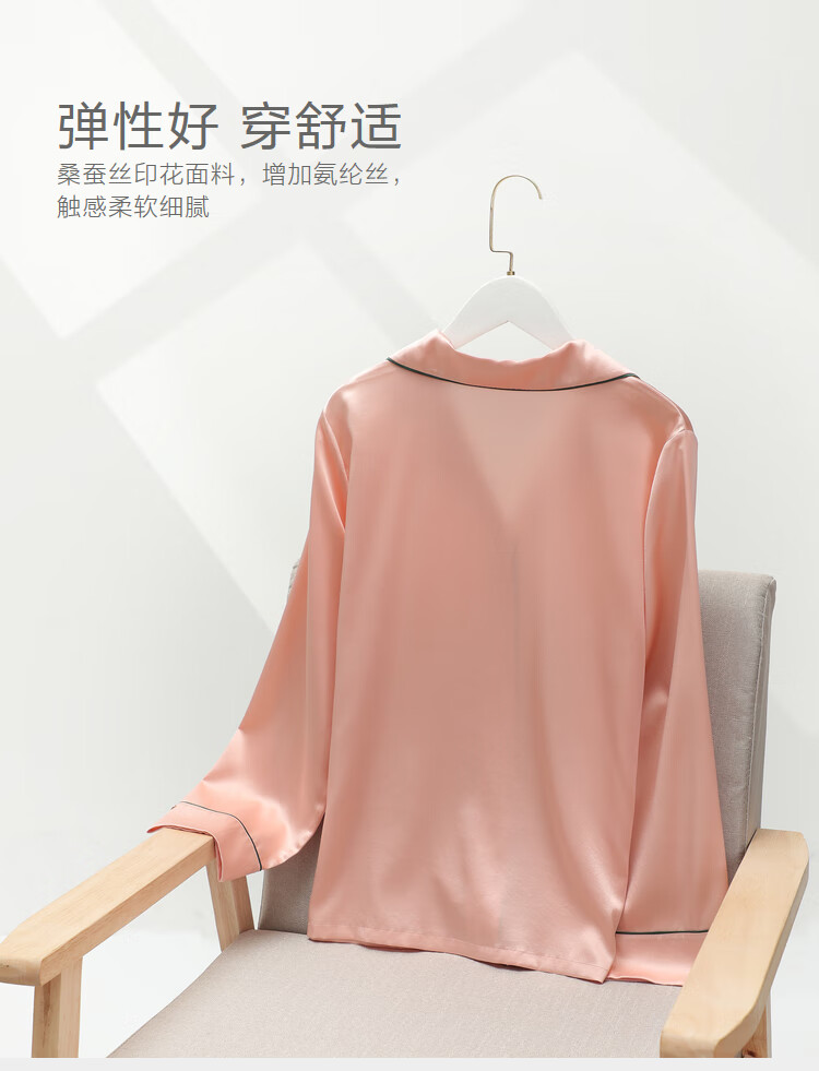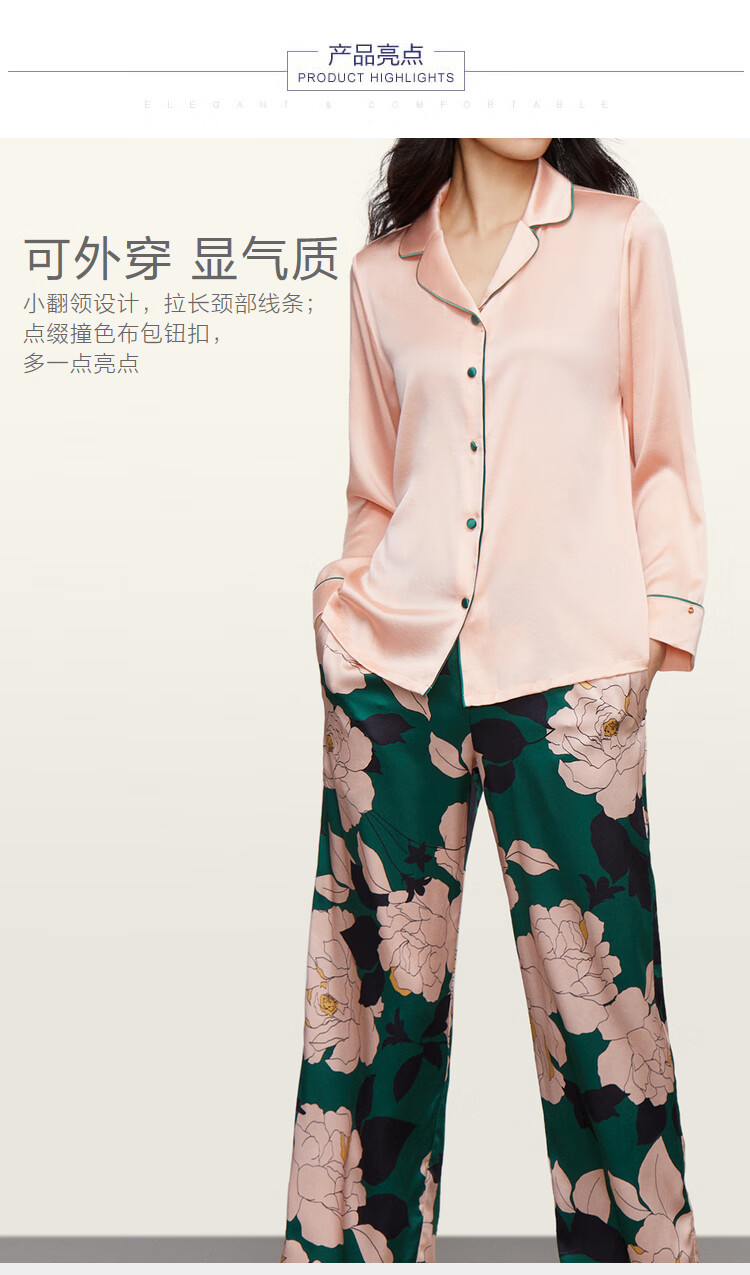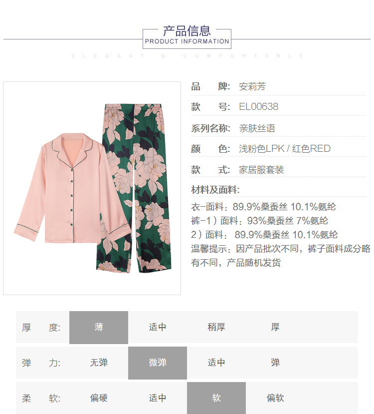 【3F】安莉芳桑蚕丝长袖睡衣睡裤女撞色可外穿家居服套装EL00638