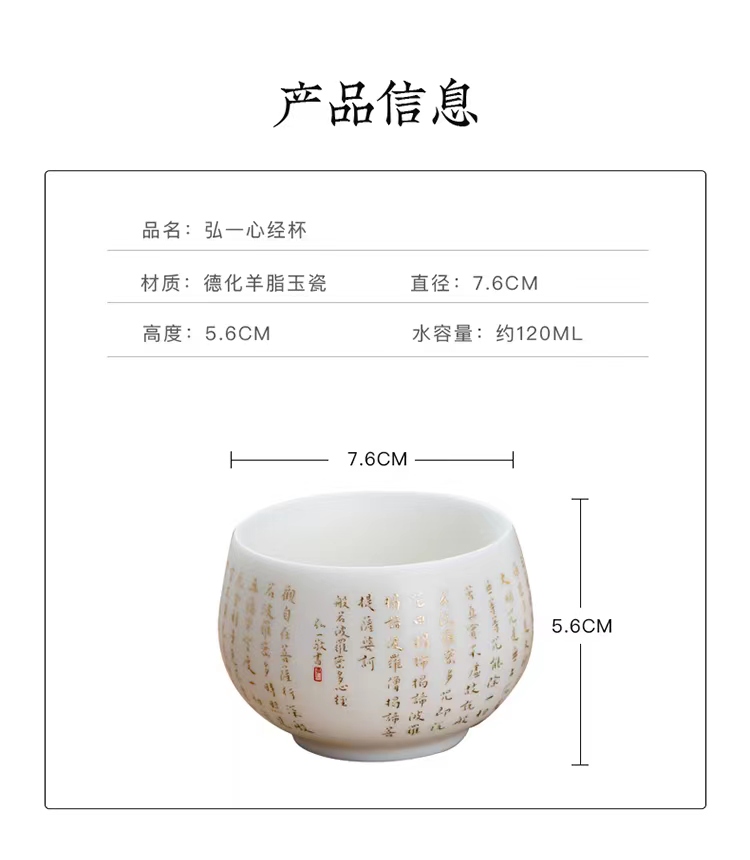 【弘一法师心经入杯盏,道尽禅机揽福气】弘一法师心经杯珍藏礼盒,德化羊脂玉瓷。