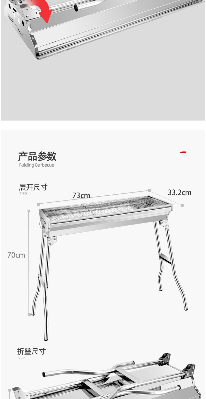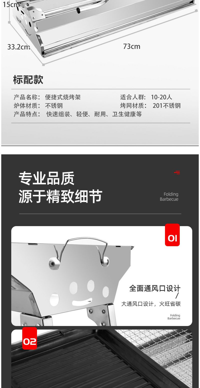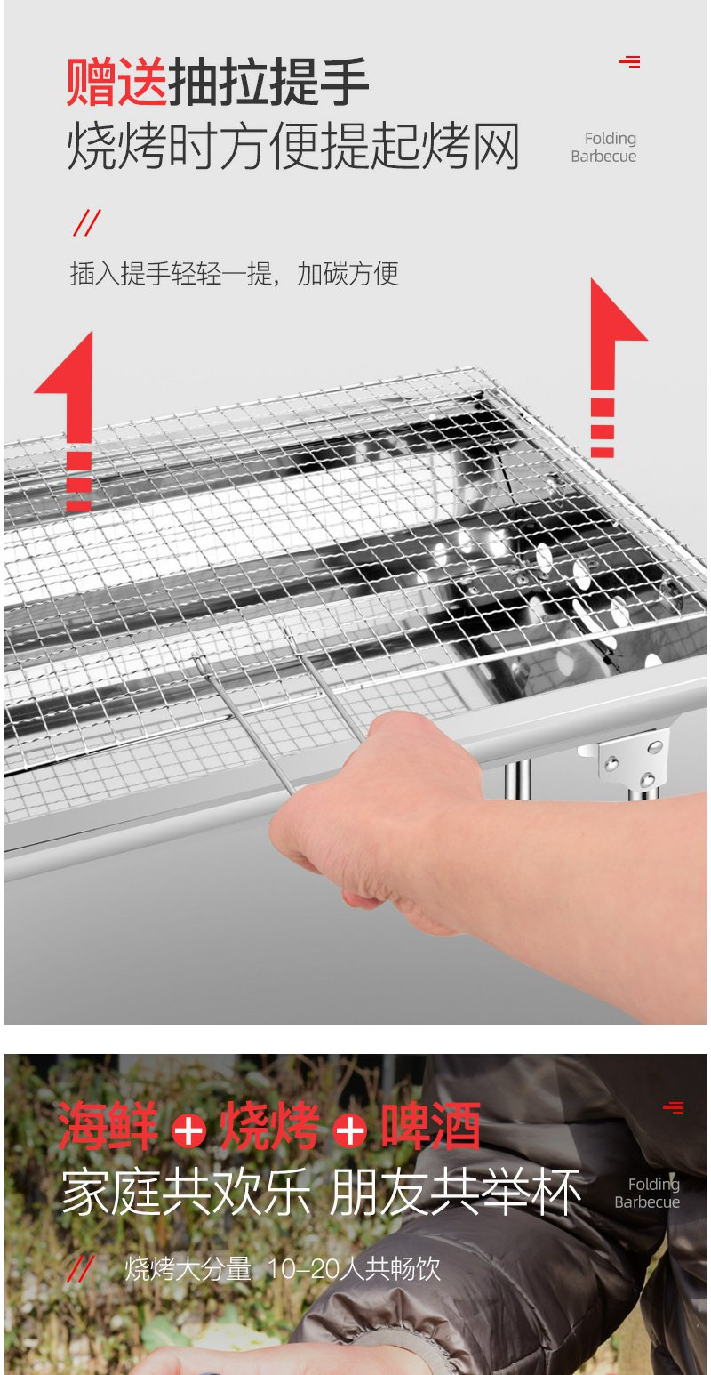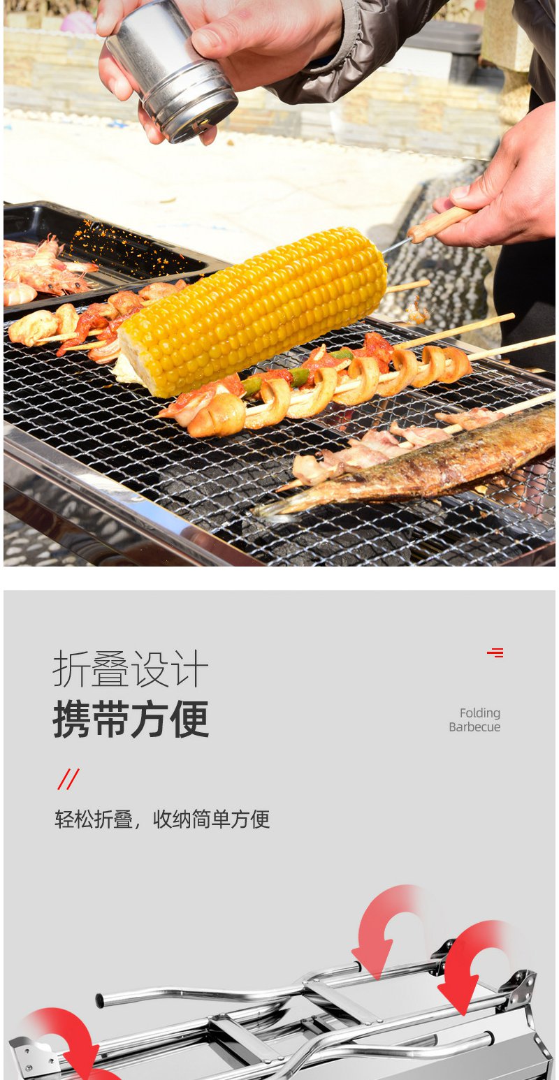 不锈钢烧烤炉木炭烧烤炉bbq碳烤炉户外折叠便携式烧烤架1个