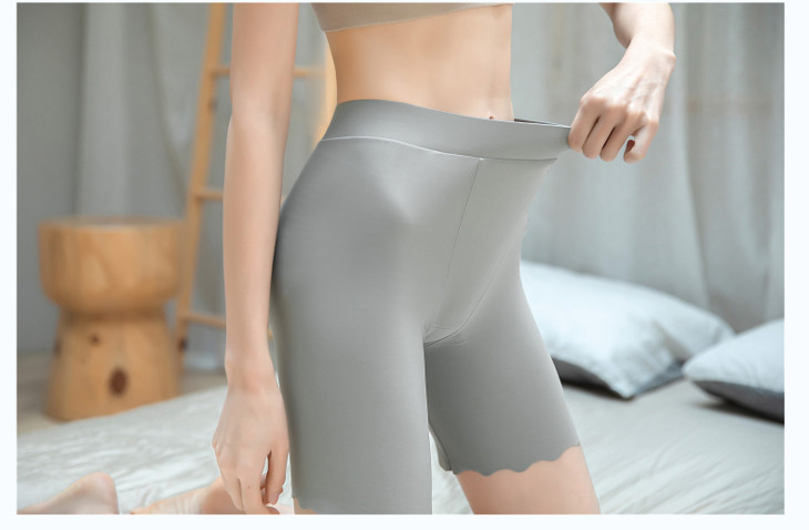市面上部分安全裤其实就是个四角内裤,在我看来,内裤外露与四角内裤外露真的也是没什么区别,所以我选安全裤肯定会选裤脚稍稍长一些的。这条安全裤是集内裤与打底裤于一体的夏天专穿款,在透气方面更是没得说。面料用的也是冰丝,穿上就冰冰凉凉,裆部用了抑箘棉做内里,可以直接贴身穿着,透气亲肤。安全裤裤角从裆部下来是13cm,几乎所有的短裙都能挡住,在保持美观的同时,增加了安全性。