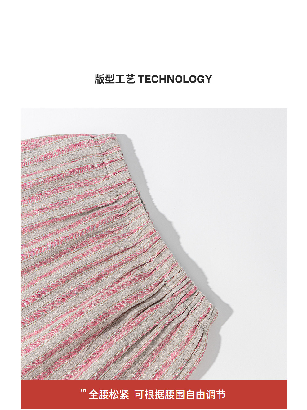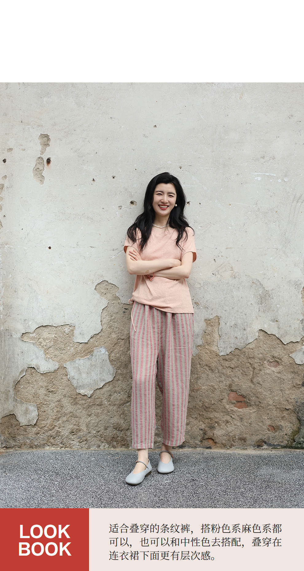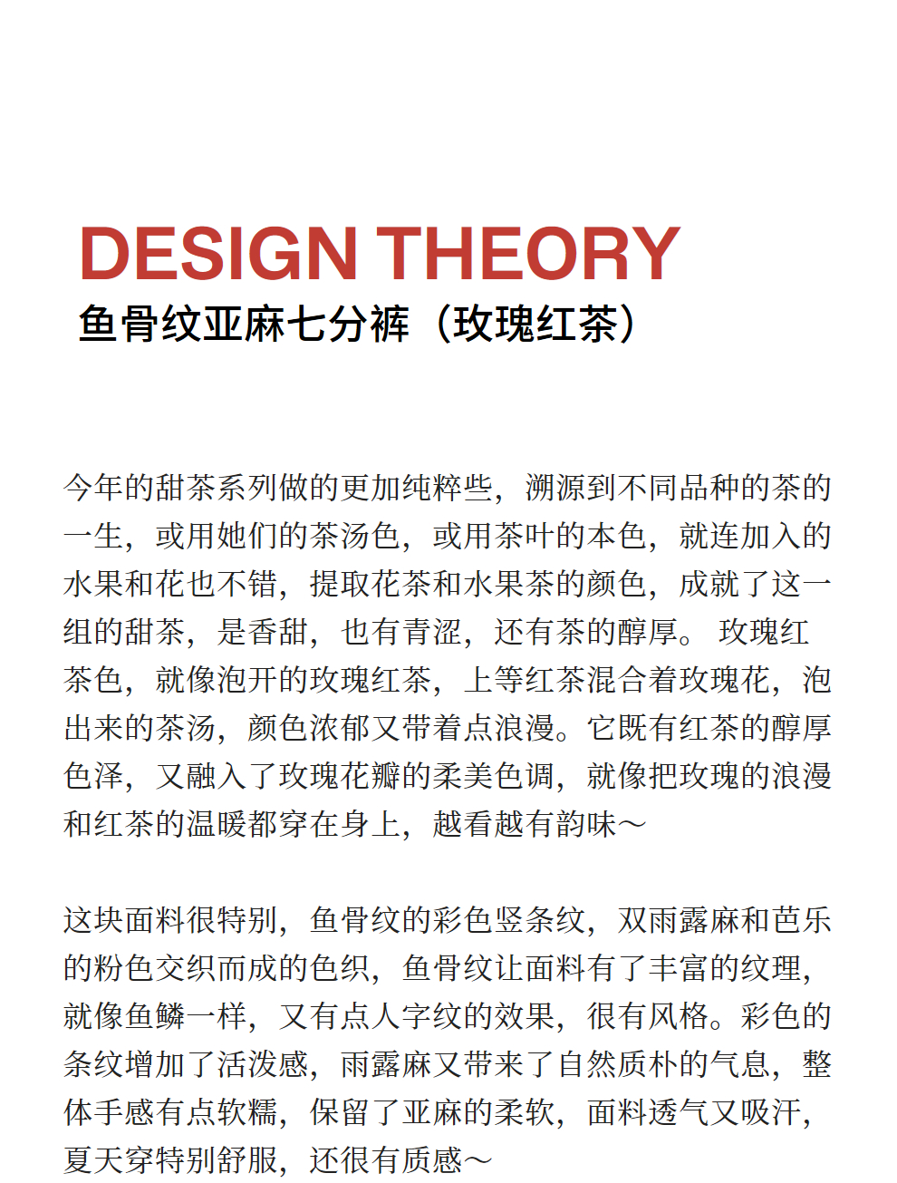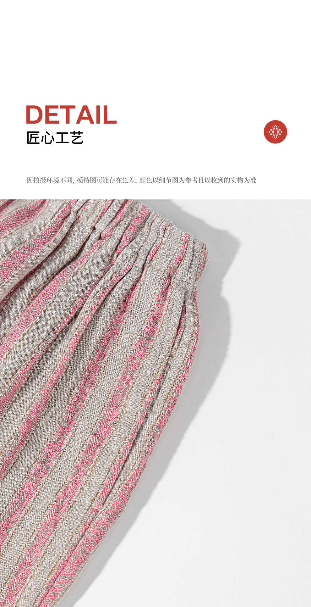 绽放女装318朵/【甜茶系列·玫瑰红茶】鱼骨纹亚麻七分裤休闲裤子