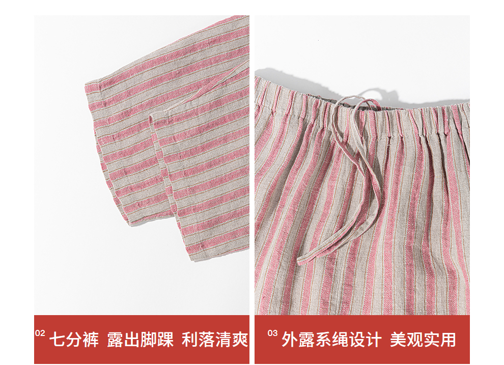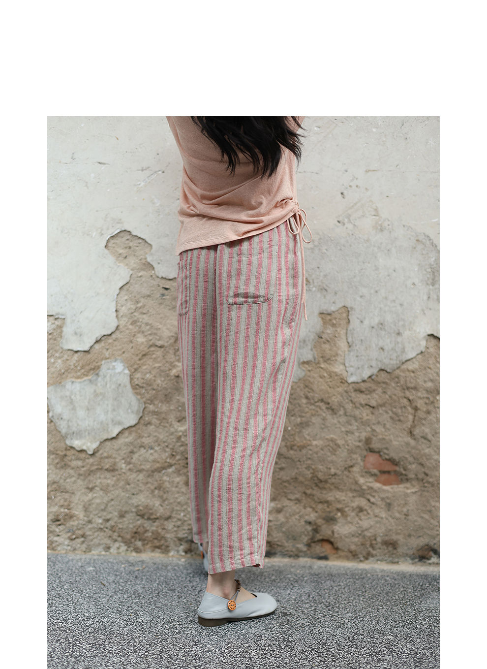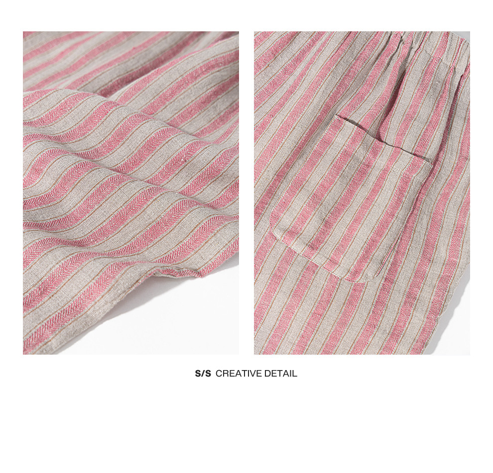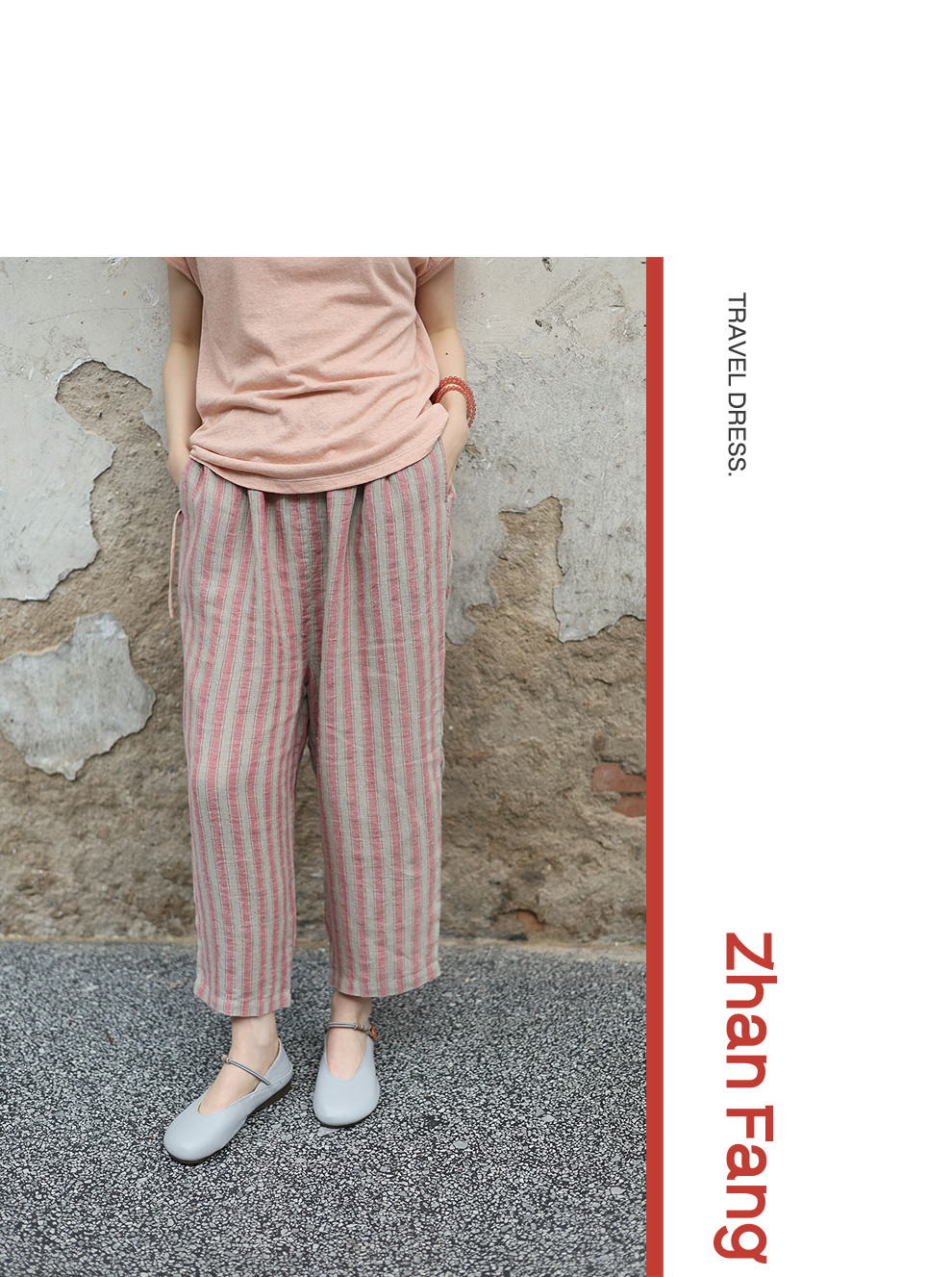 绽放女装318朵/【甜茶系列·玫瑰红茶】鱼骨纹亚麻七分裤休闲裤子