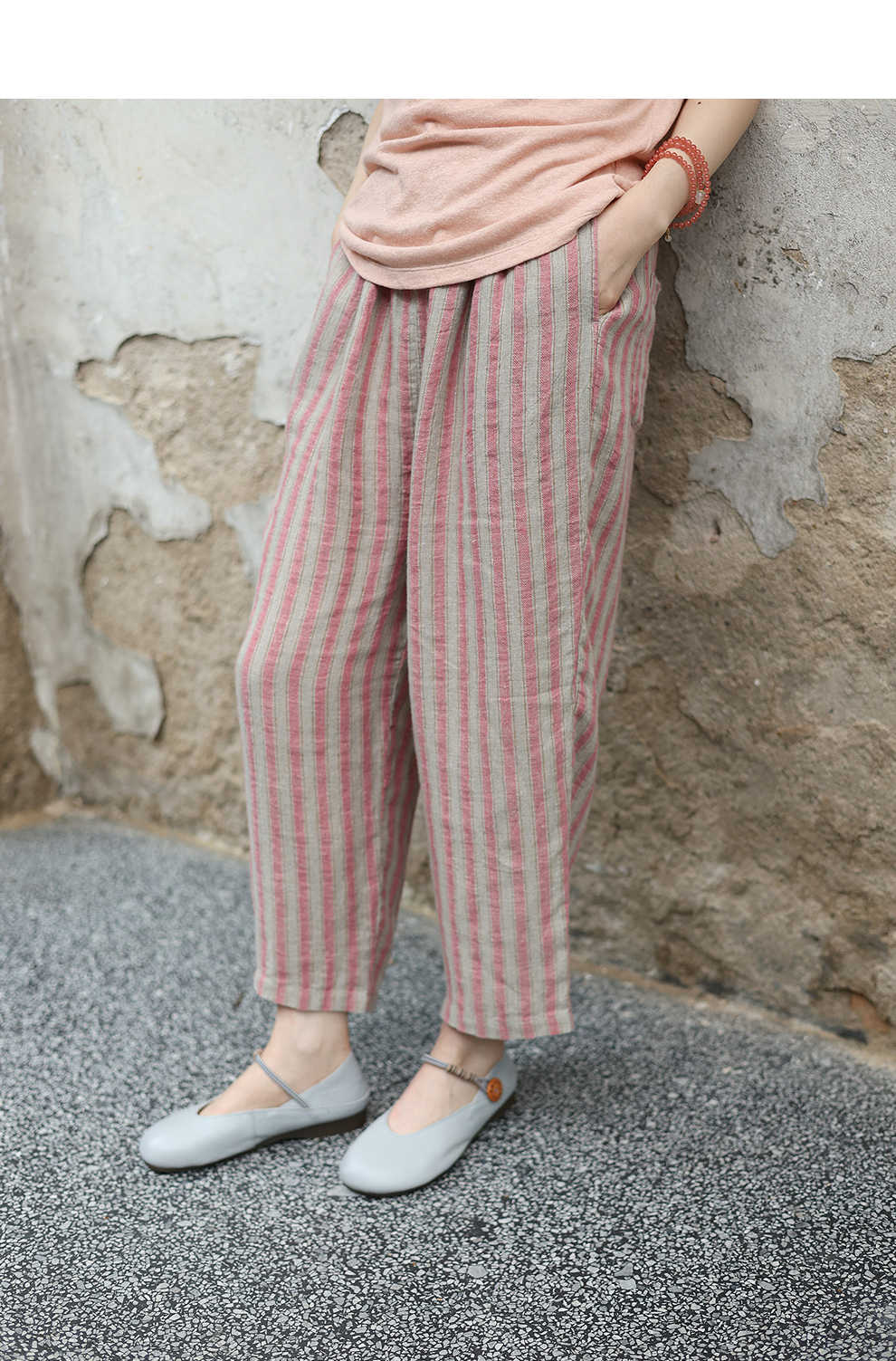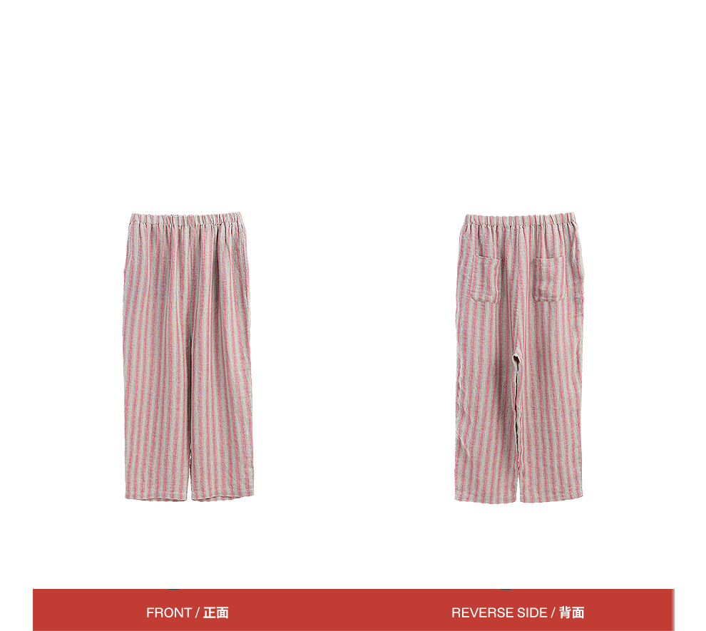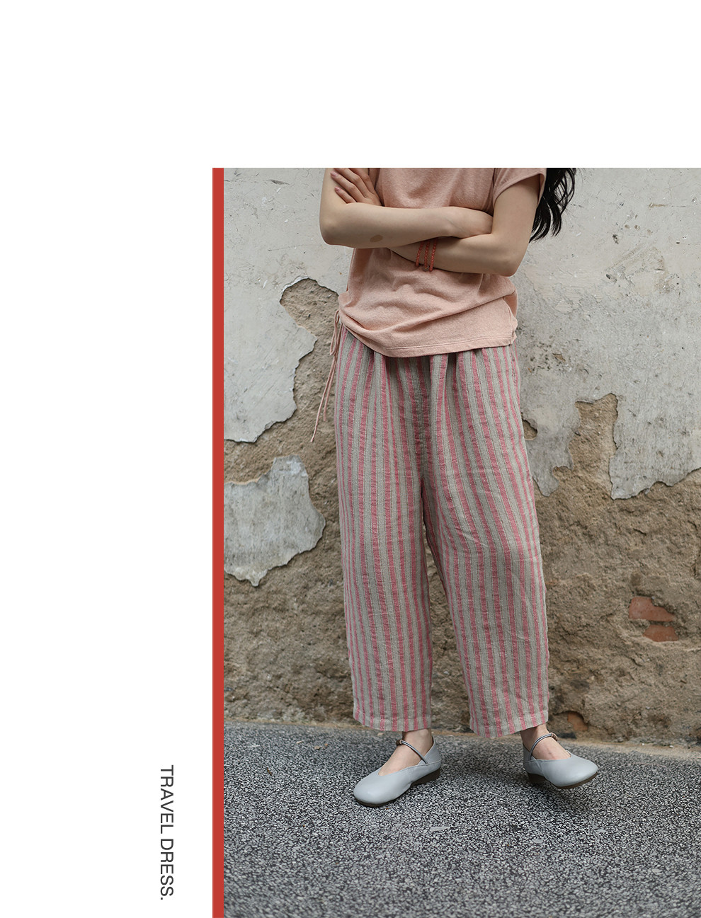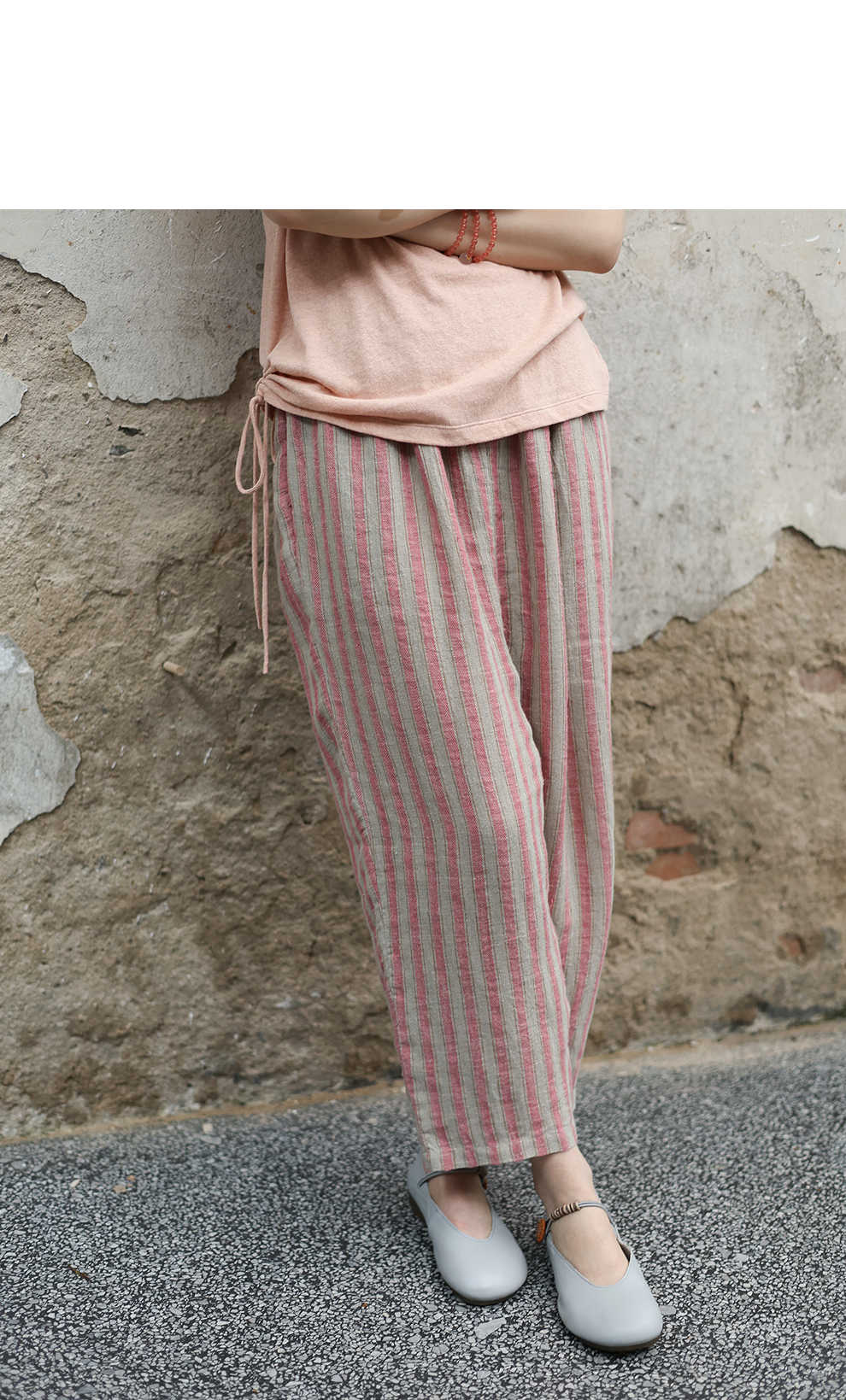绽放女装318朵/【甜茶系列·玫瑰红茶】鱼骨纹亚麻七分裤休闲裤子
