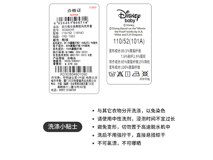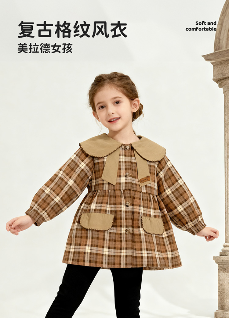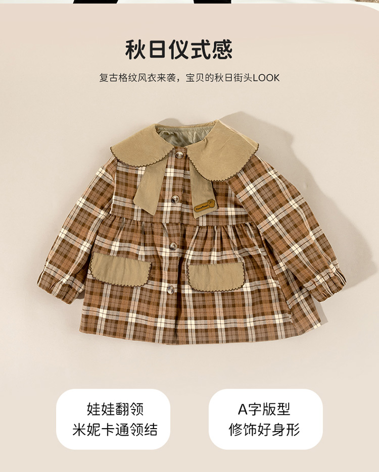 迪士尼25新款女童娃娃领格子风衣外套XD3DS049