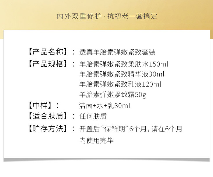 【1抹紧致提亮 全脸嫩到发光】羊胎素弹嫩紧致套装#羊胎素抗初老水乳中年妈妈化妆护肤品套装补水保湿正品女男士