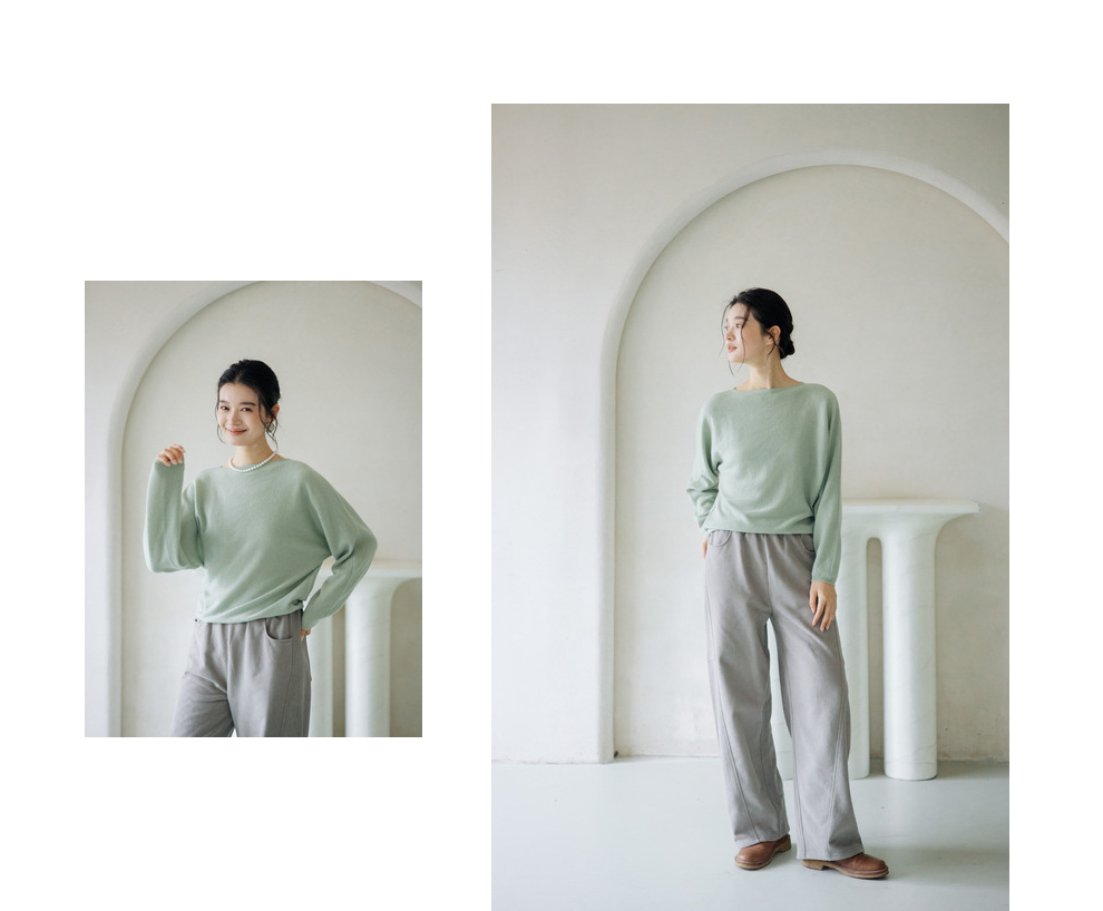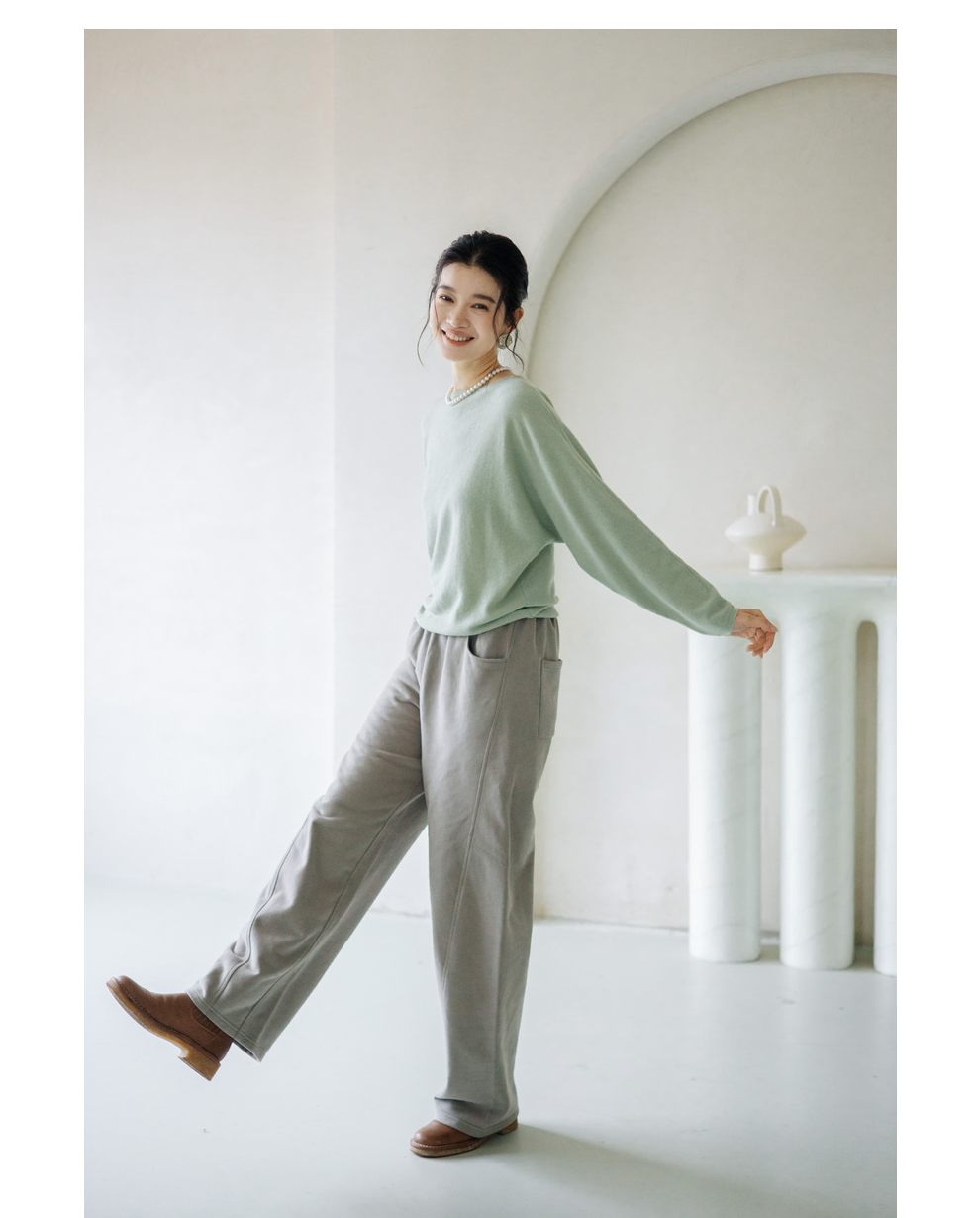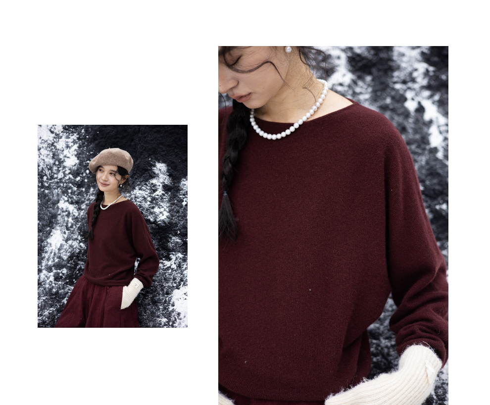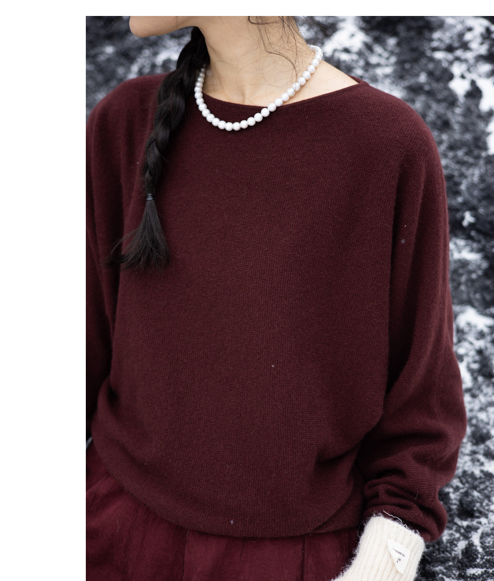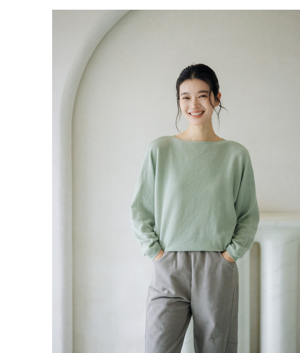 绽放旅行女装872朵/100%珍贵山羊绒圆领百搭连身袖针织长袖毛衣