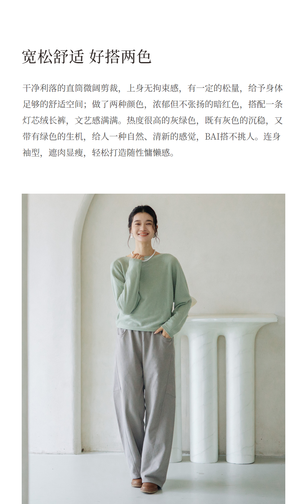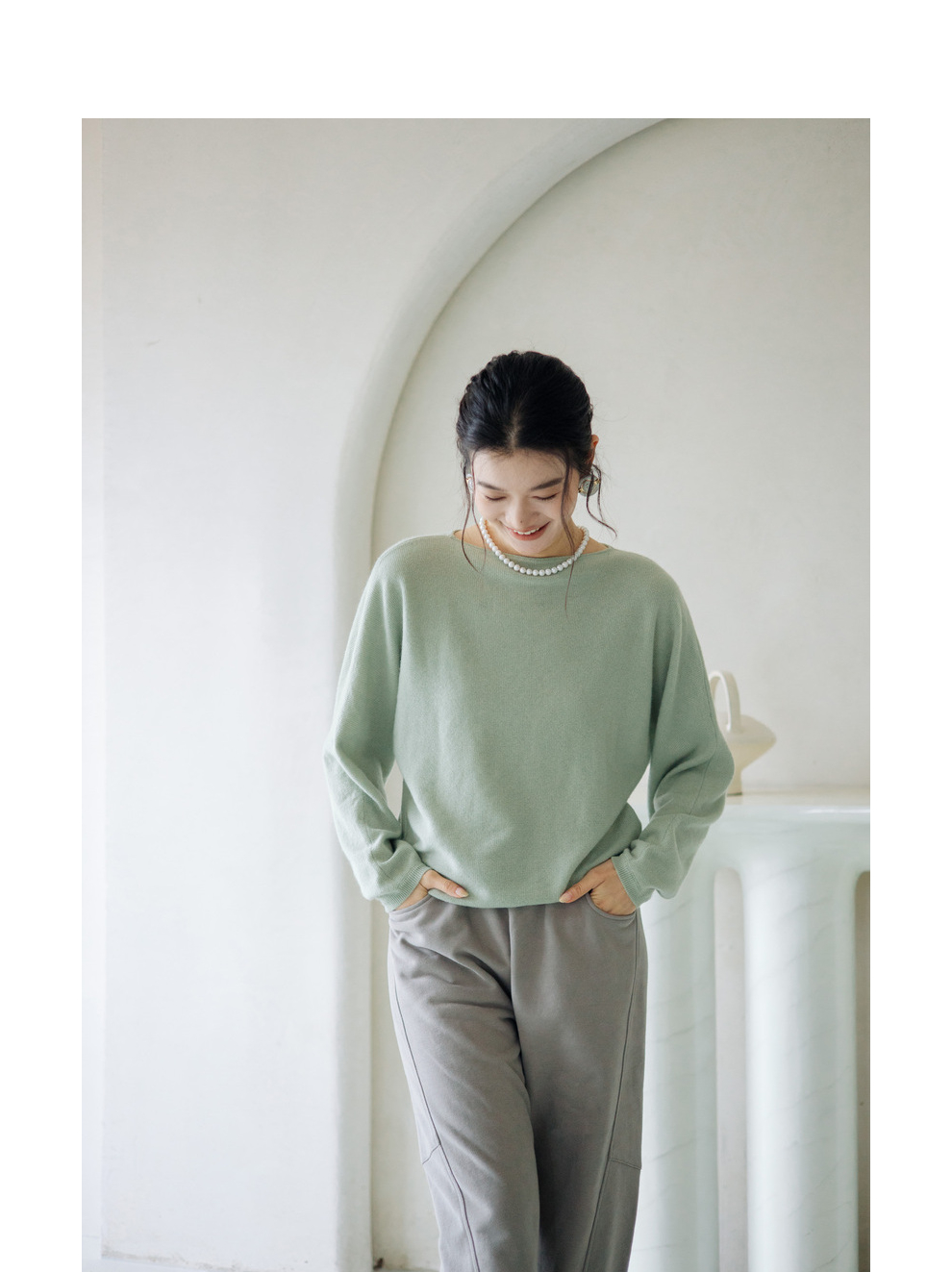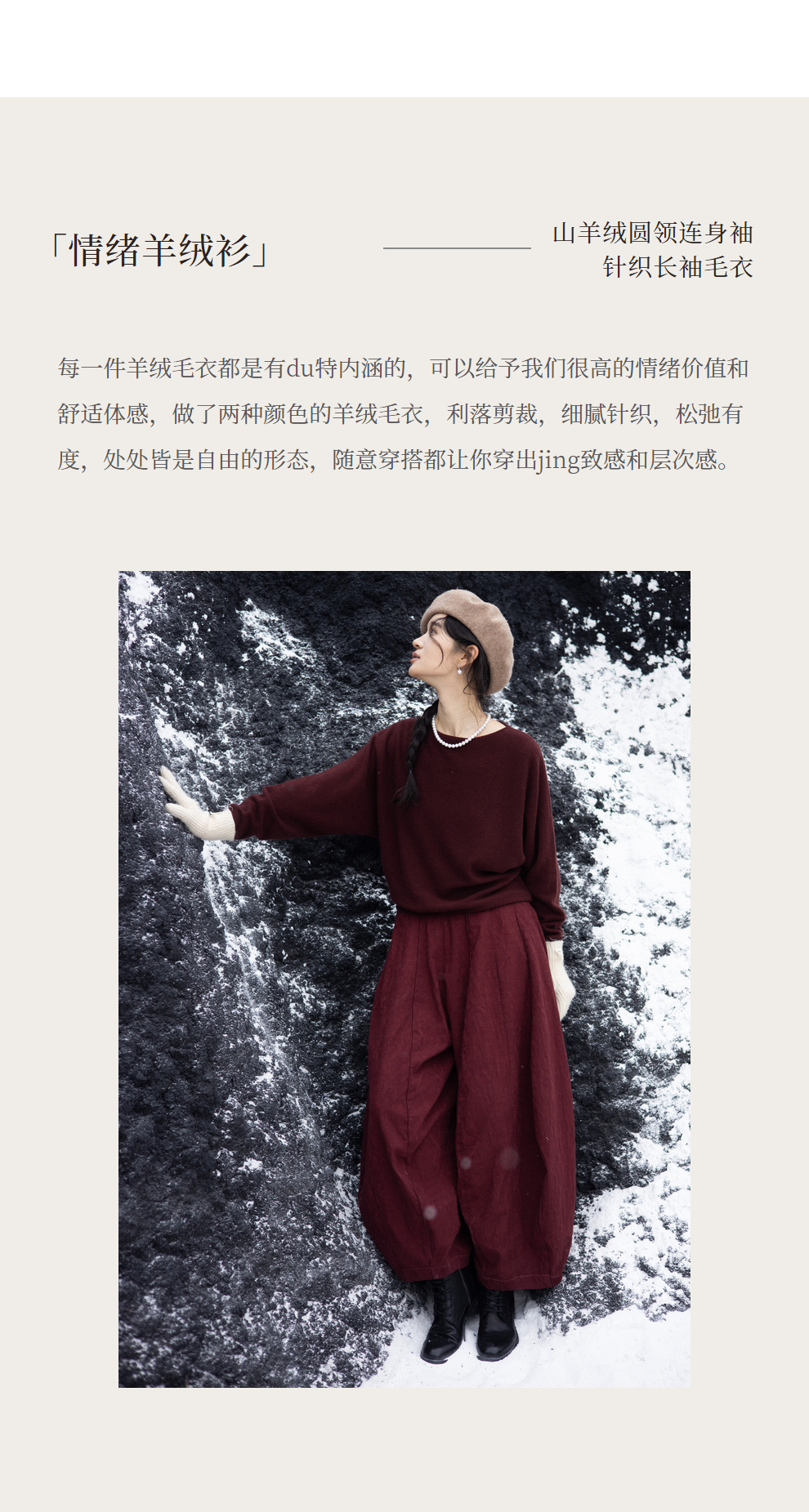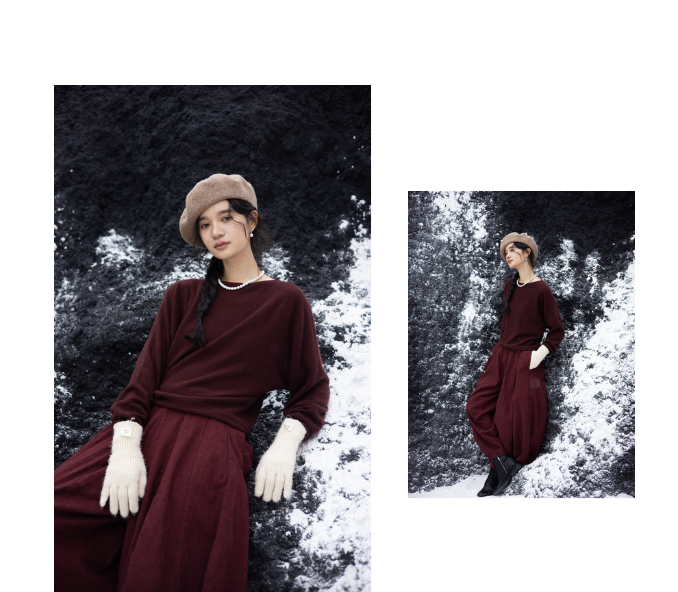 绽放旅行女装872朵/100%珍贵山羊绒圆领百搭连身袖针织长袖毛衣