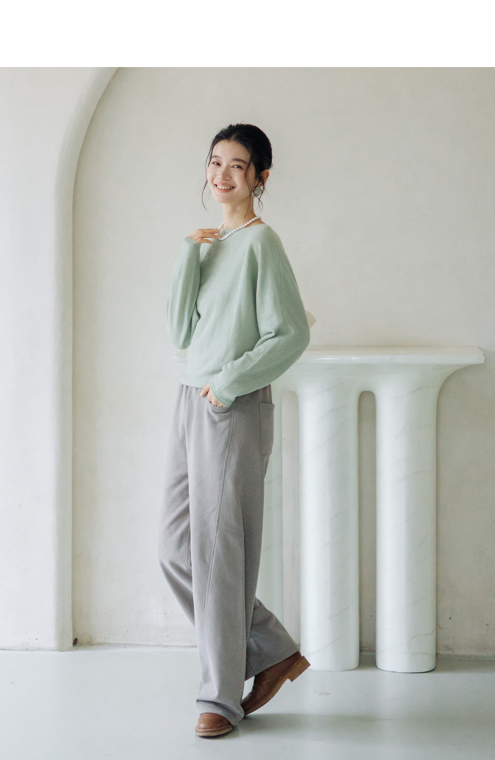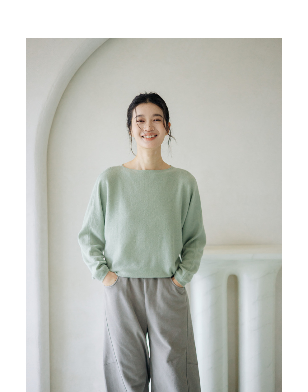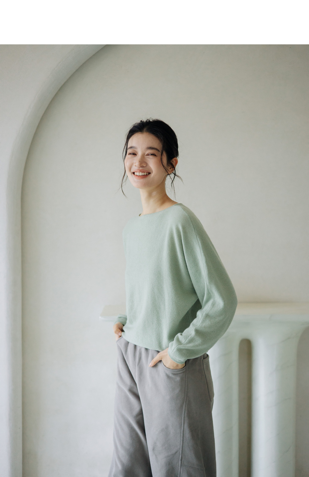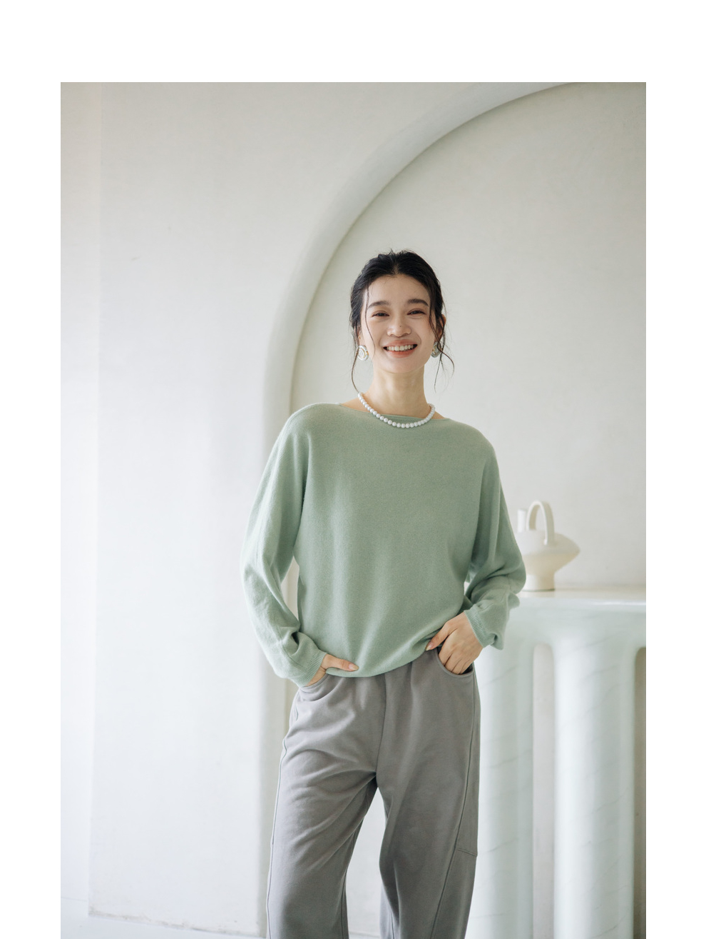 绽放旅行女装872朵/100%珍贵山羊绒圆领百搭连身袖针织长袖毛衣