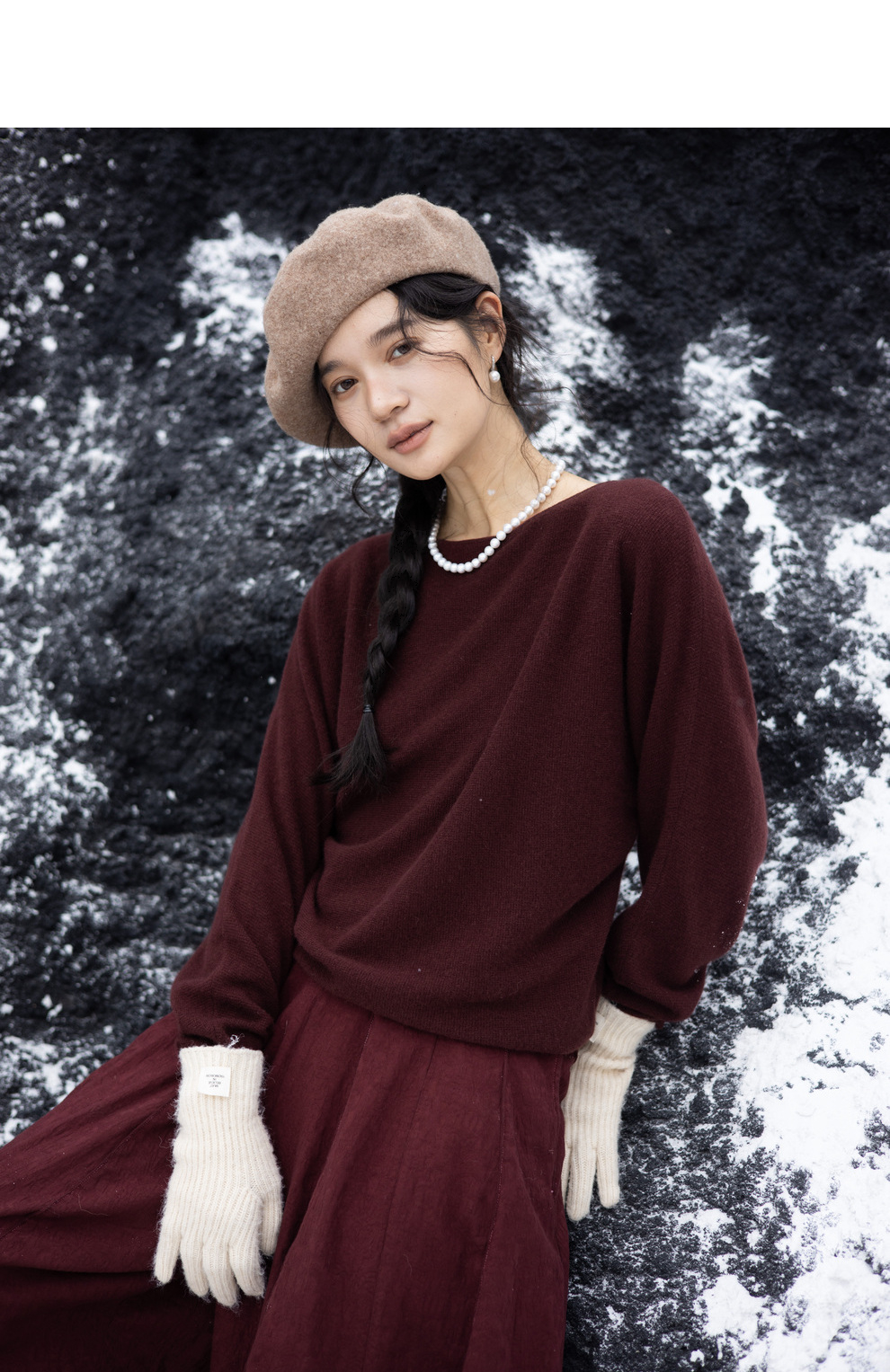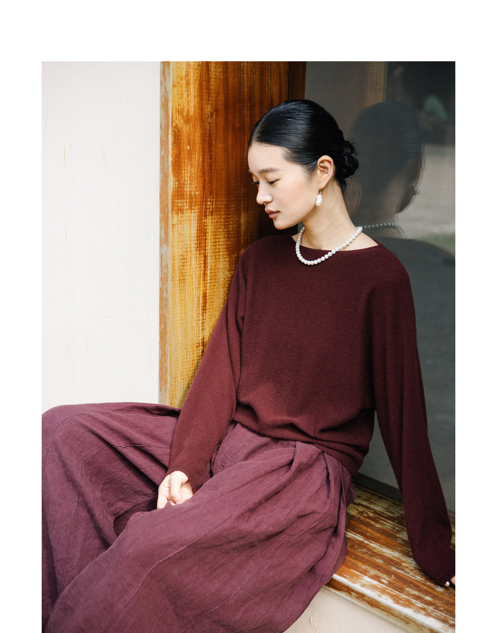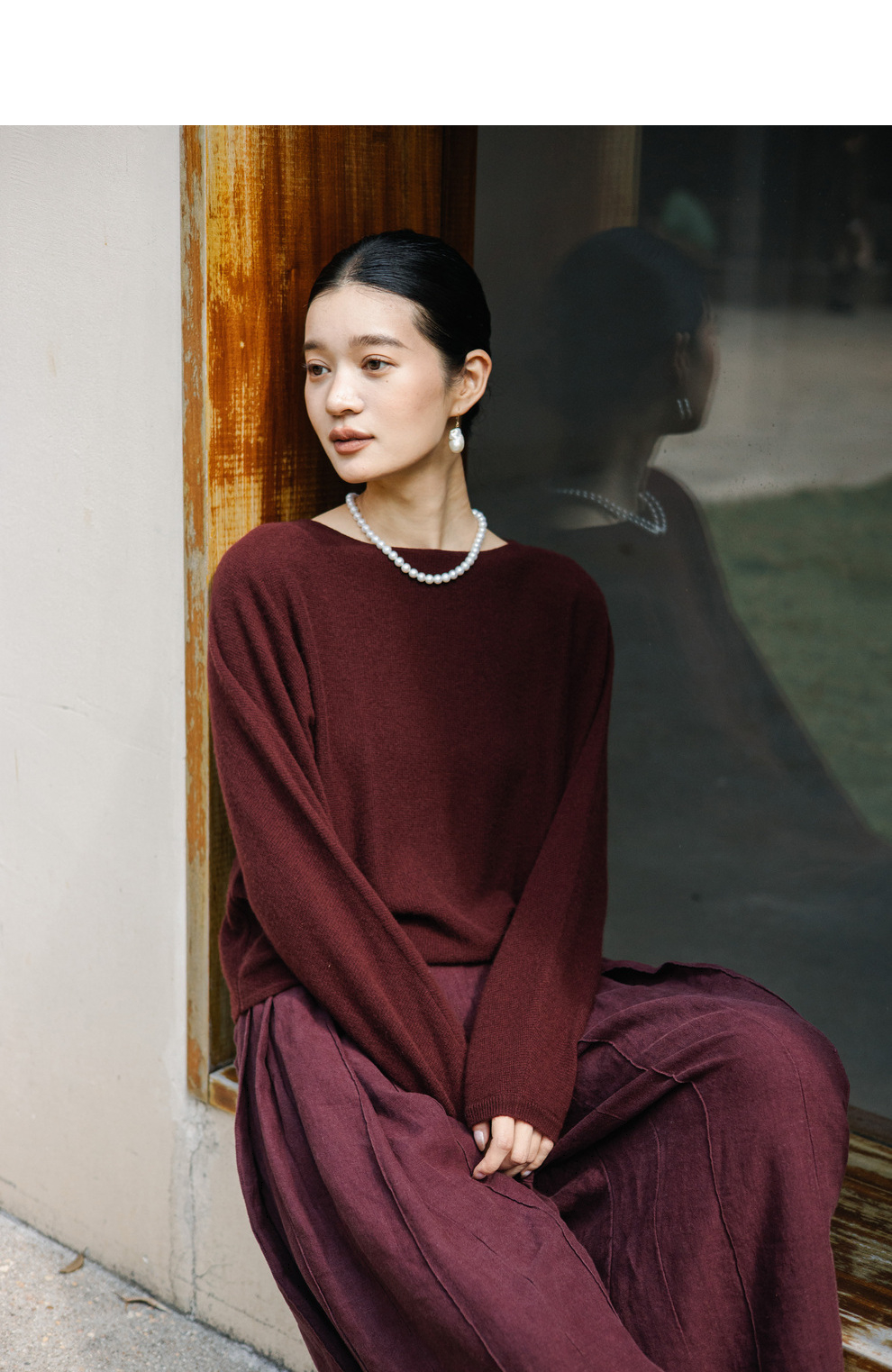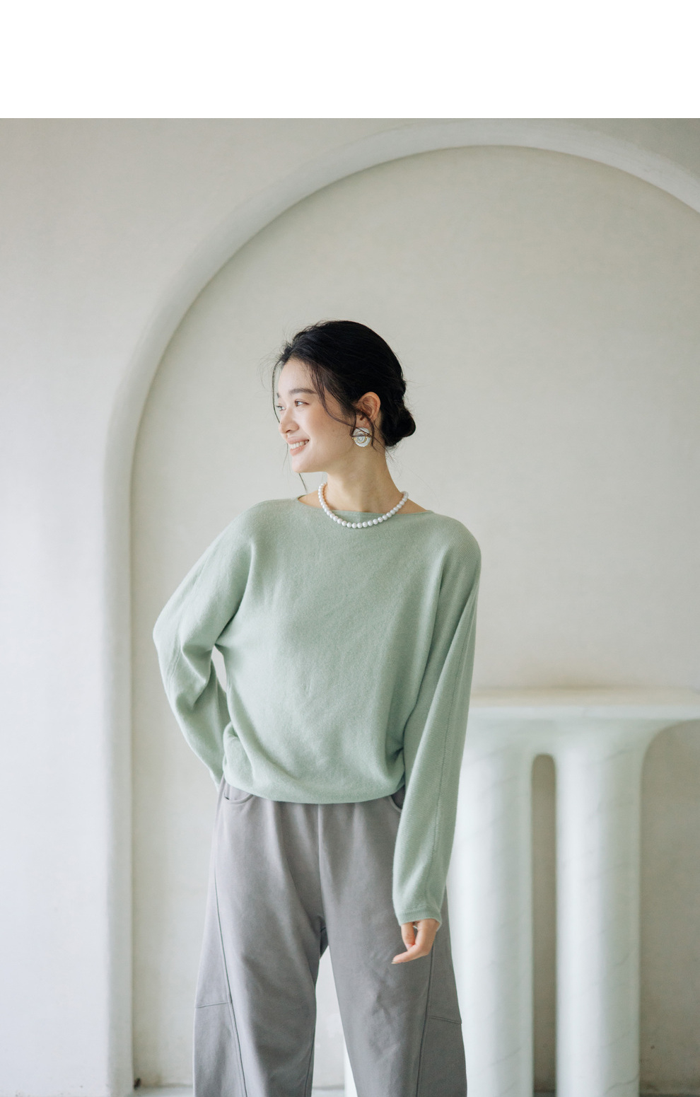 绽放旅行女装872朵/100%珍贵山羊绒圆领百搭连身袖针织长袖毛衣