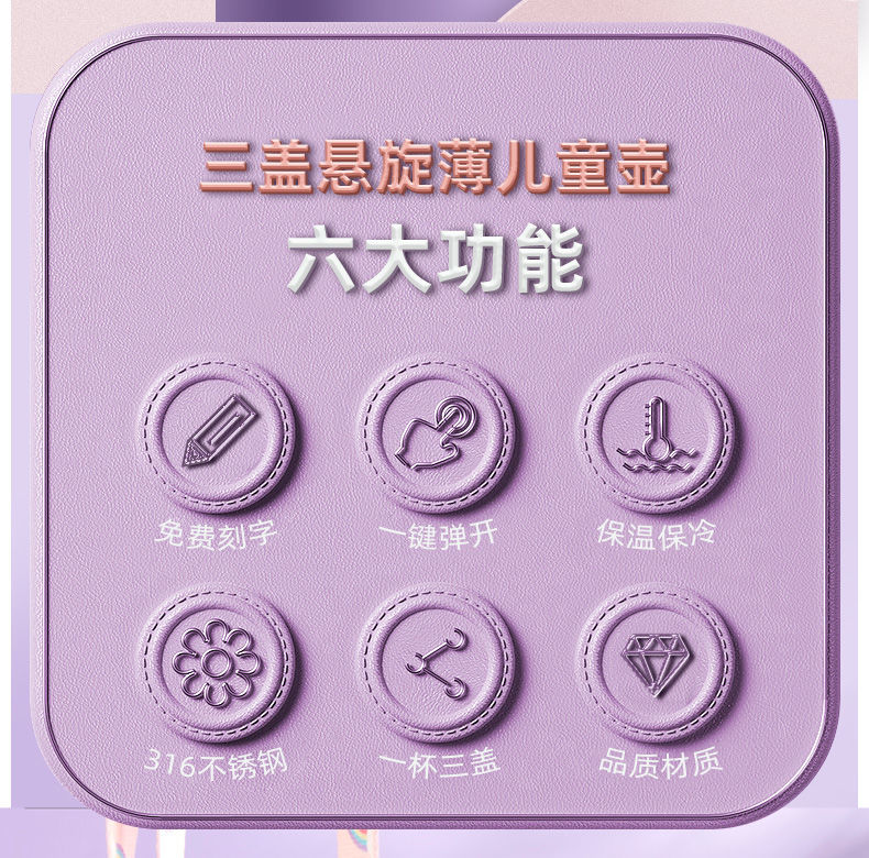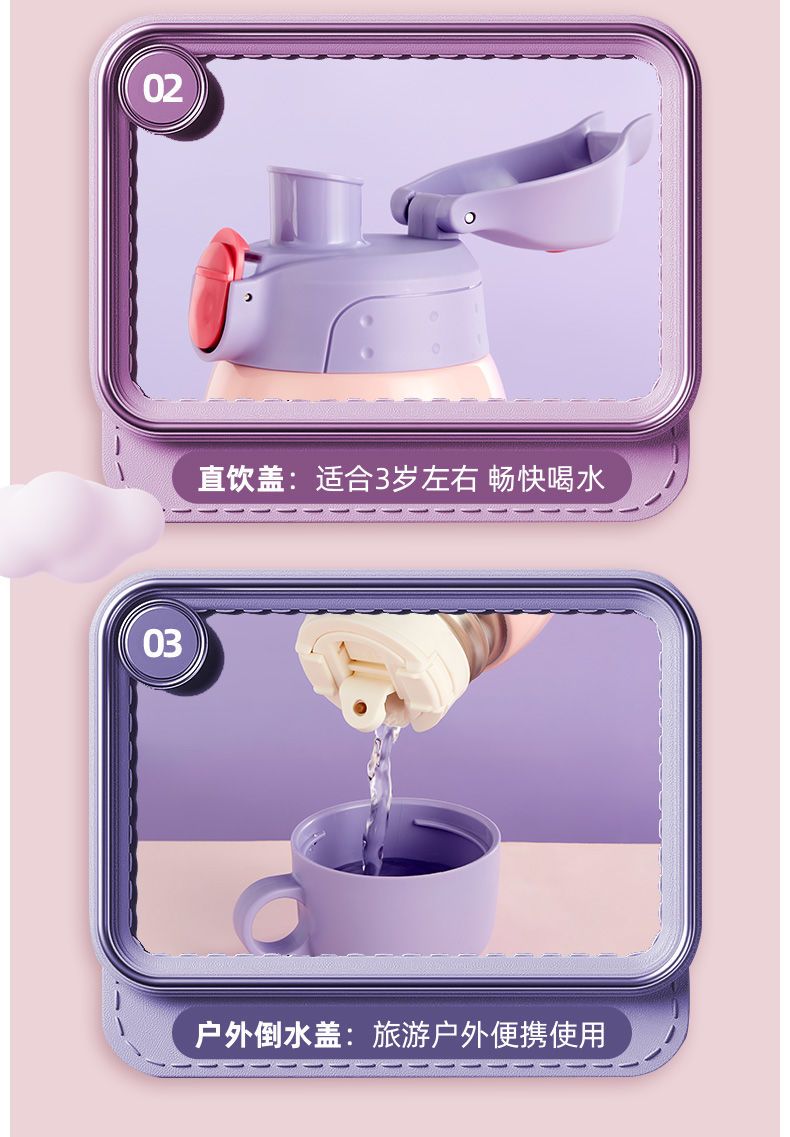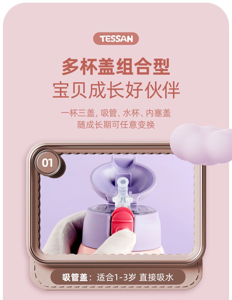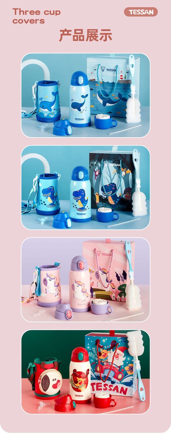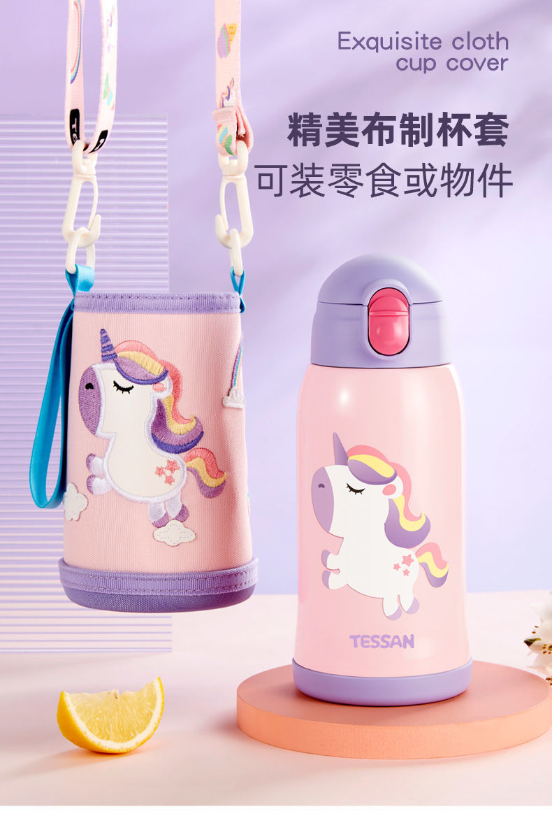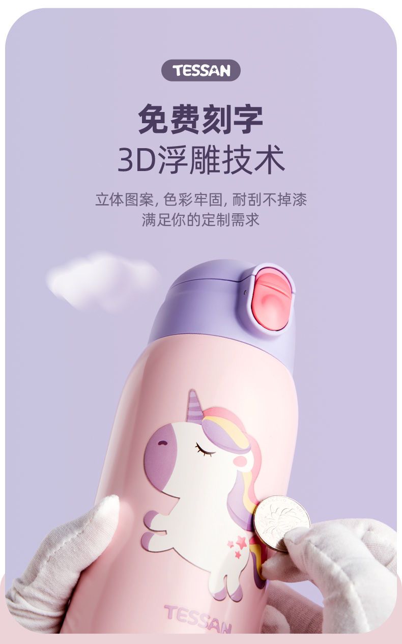 TESSAN儿童保温杯带吸管316食品级女孩男童小学生幼儿园水壶水杯