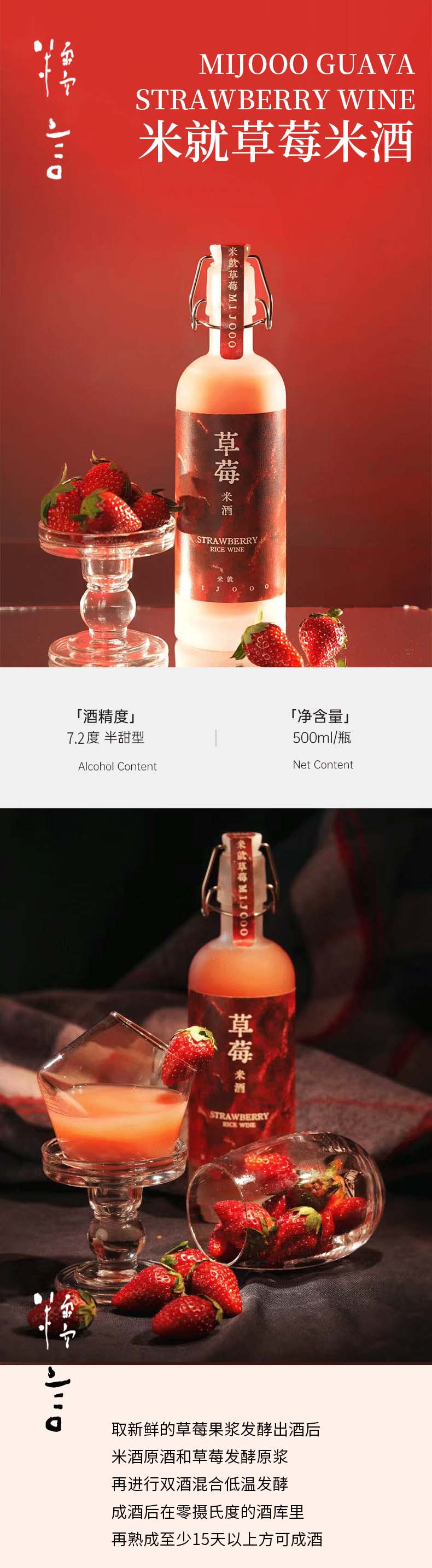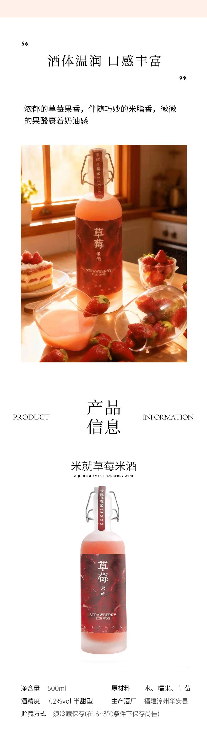 【瑰爱携双甜】糯言MIJOOO草莓米酒500ml+芭乐米酒500ml+瑰爱350ml