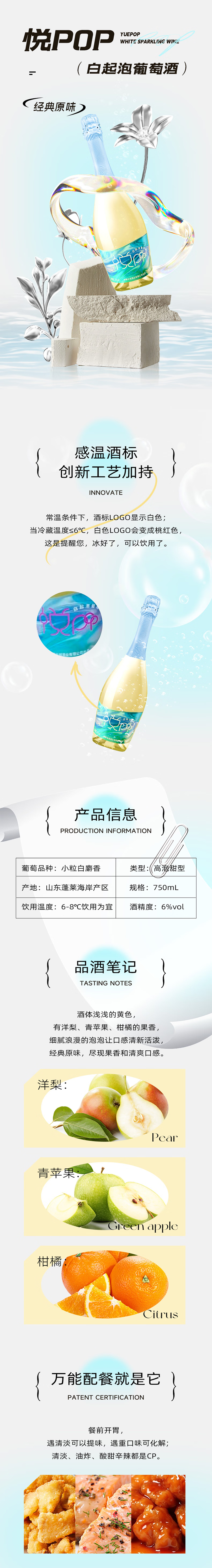 中粮长城悦pop白起泡葡萄酒  清新活泼  果香薏仁  柔和不上头 750ml 商品图2