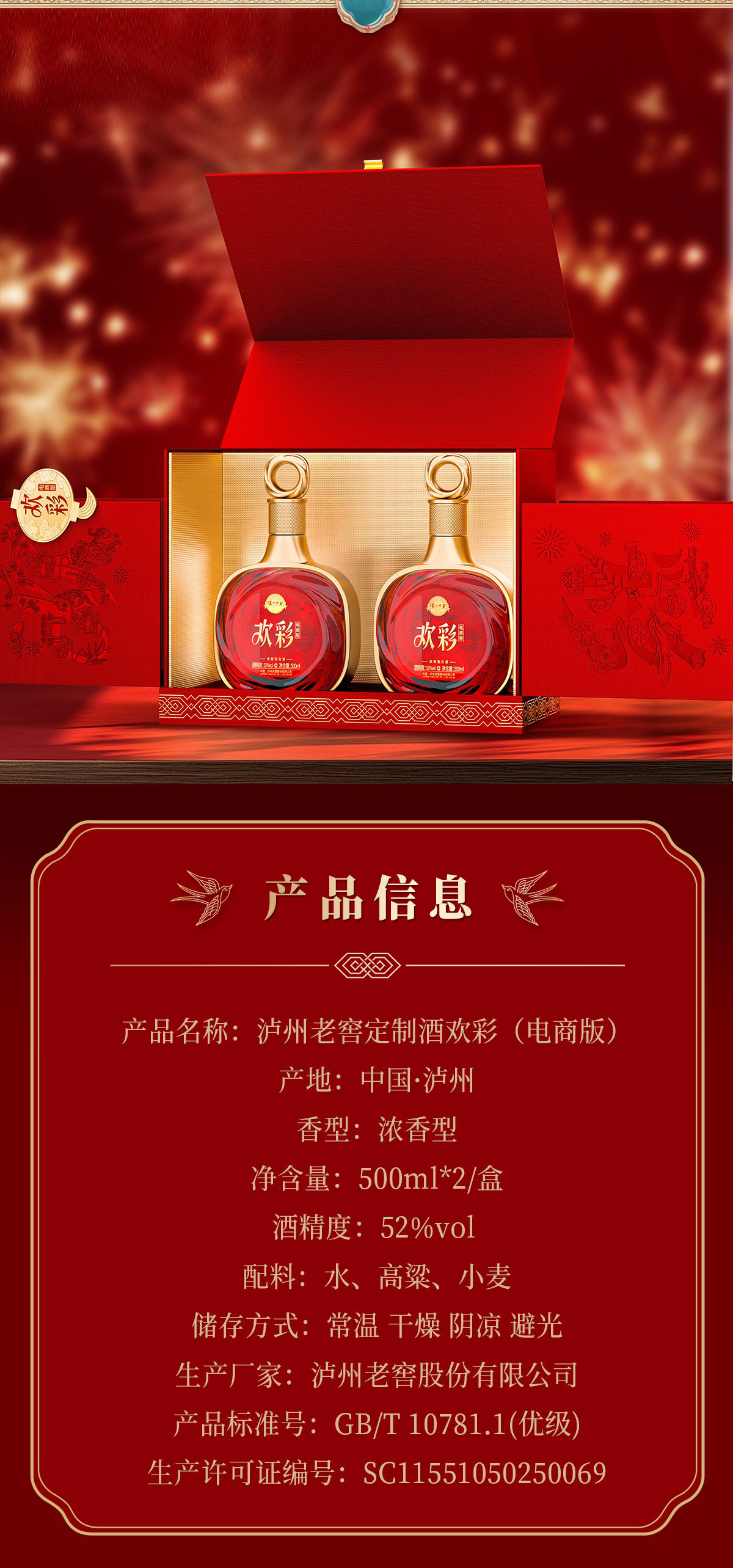 【酒厂直营】52度 泸州老窖定制酒欢彩(电商版)/惟尊 500ml*2 泸州老窖官方旗舰店