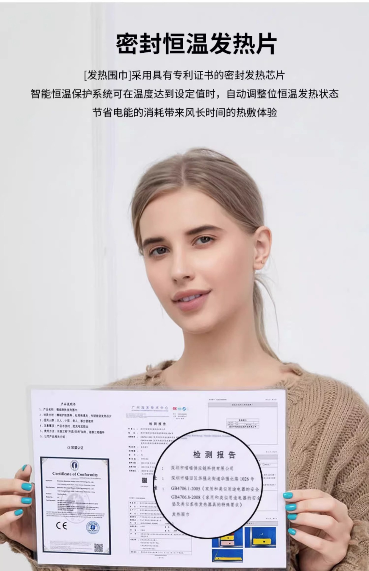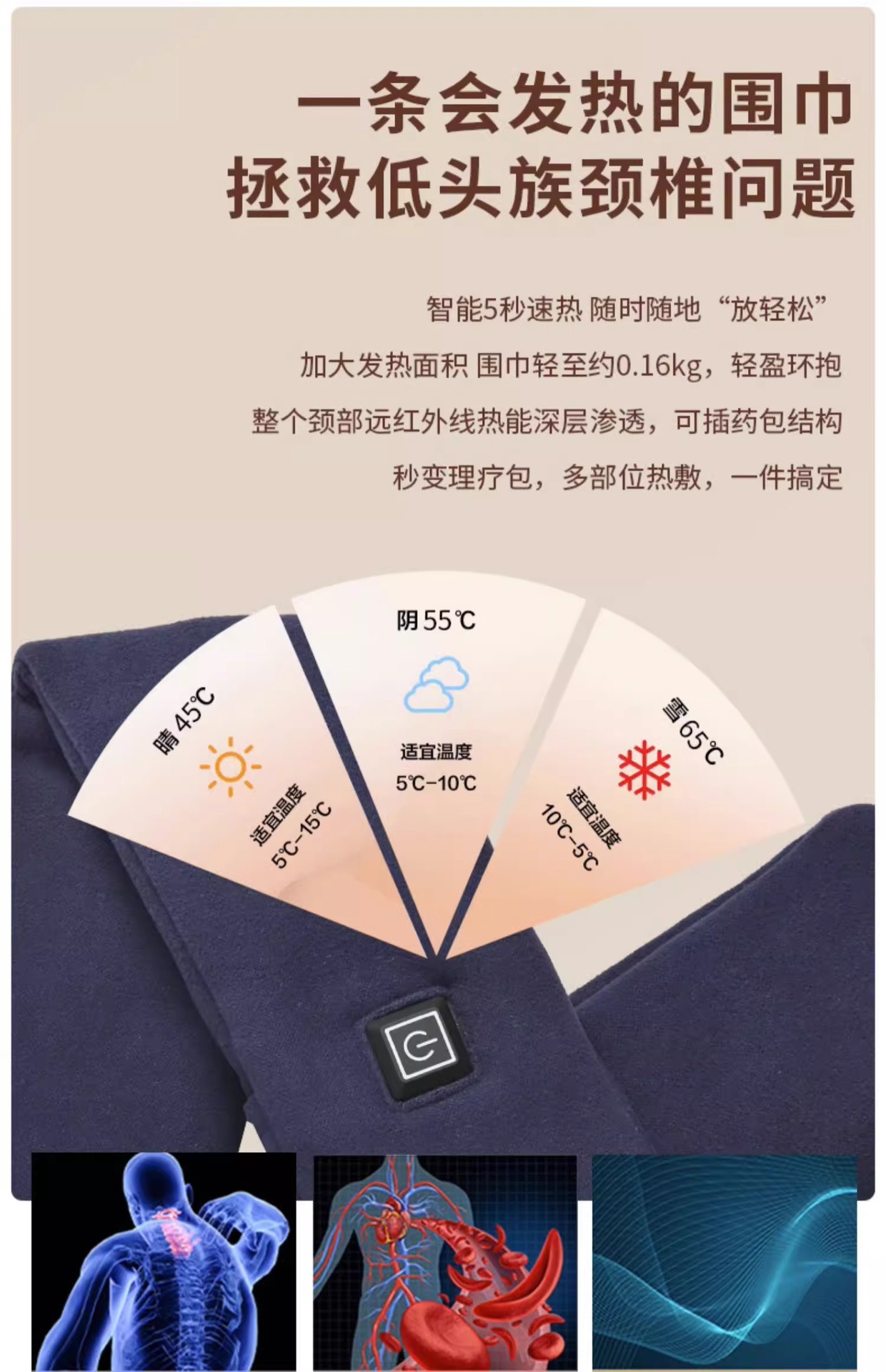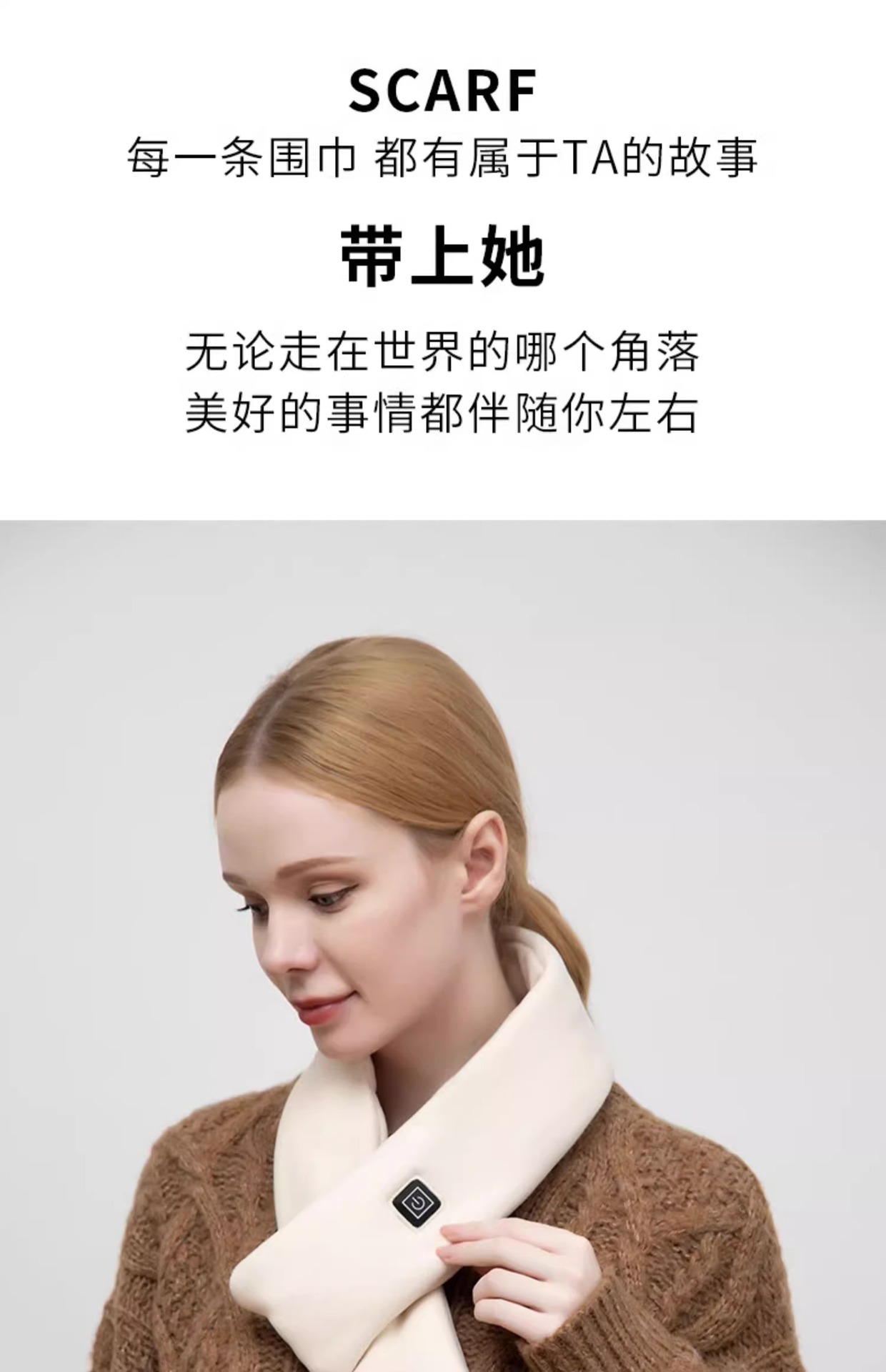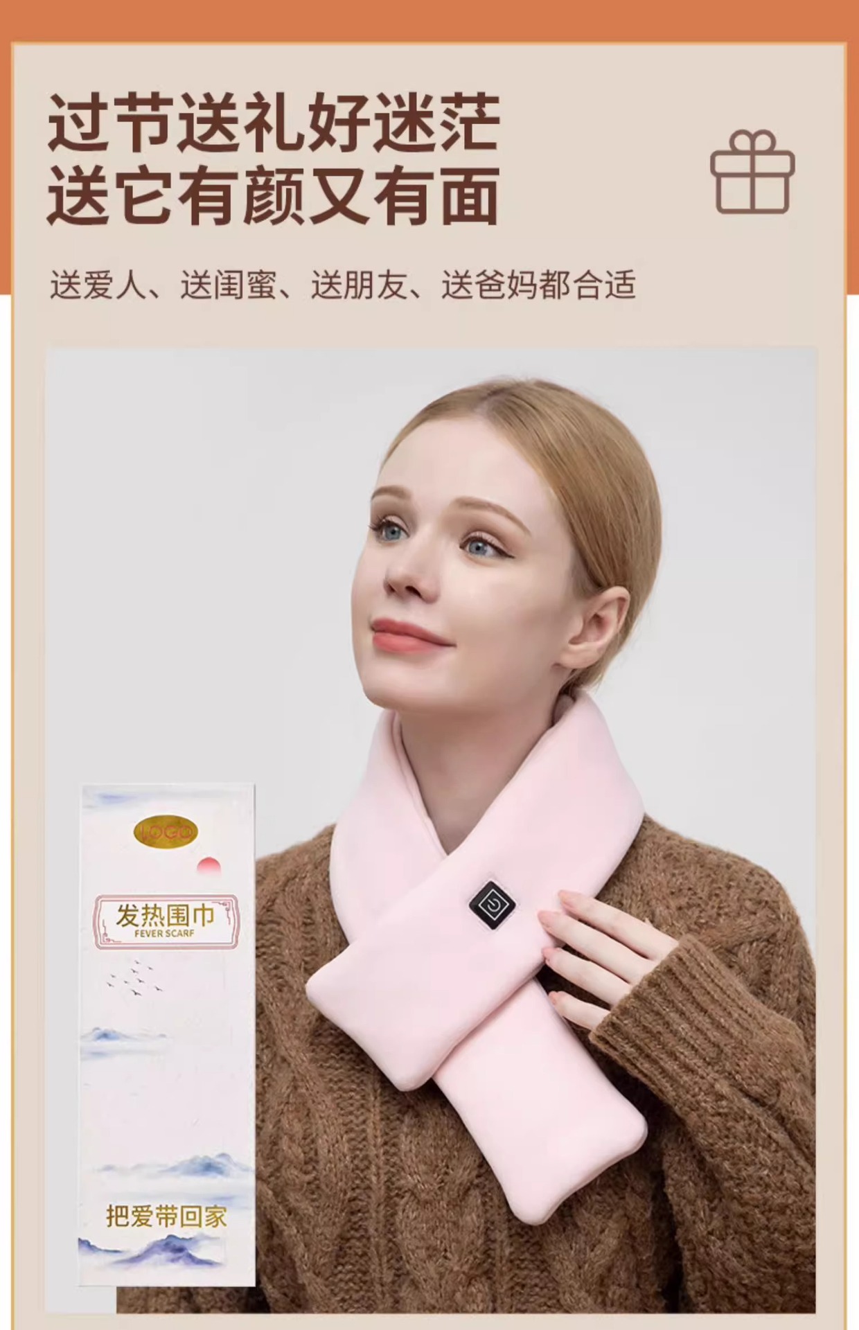 新款高级感加热围脖女冬季保暖护颈热敷充电智能调节发热围巾