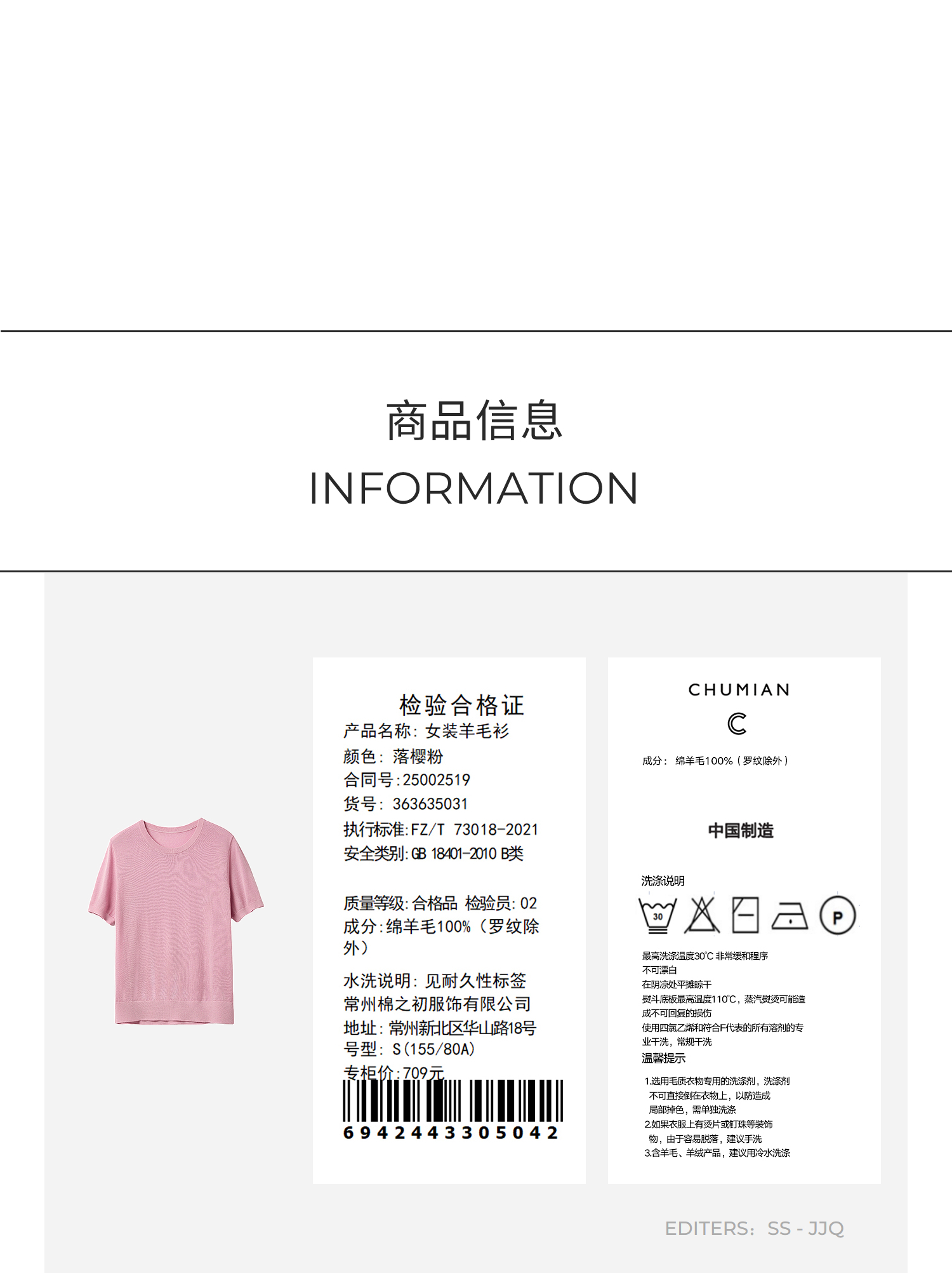 棉仓363635031-扬子可机洗全羊毛针织短袖衫