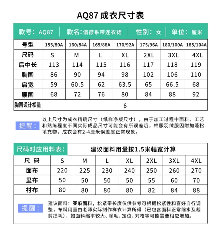裁缝学苑AQ87 亚麻茶歇裙2022新款连衣裙纸样女装衣服样板打板图