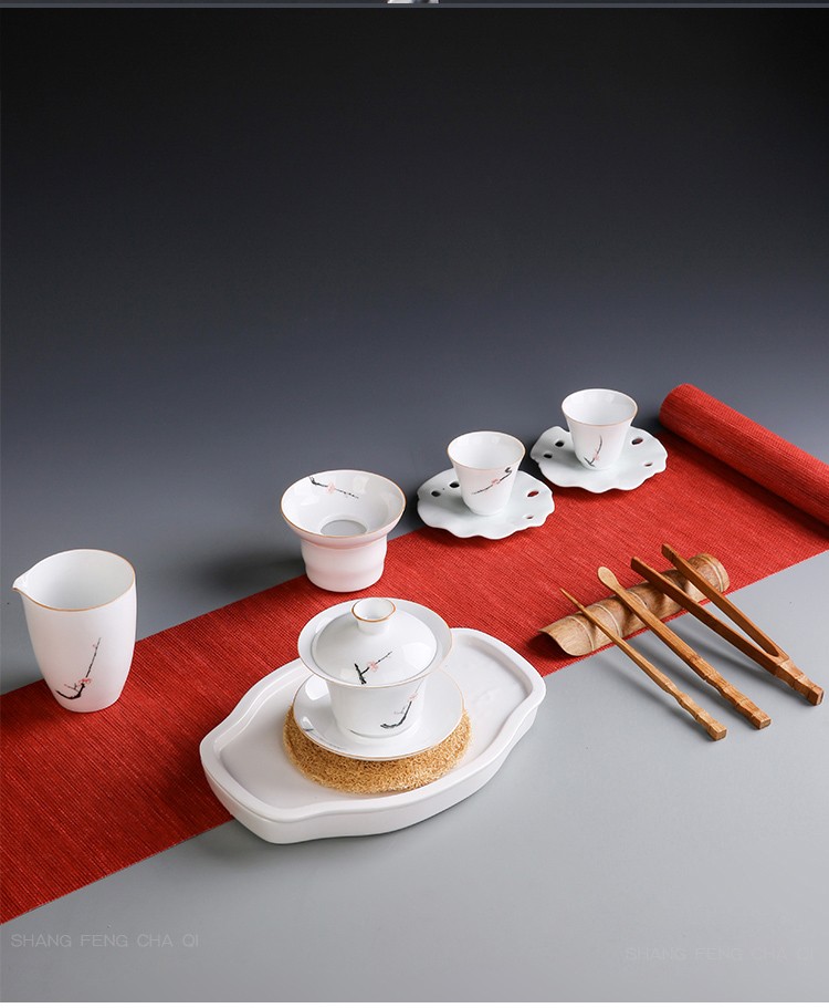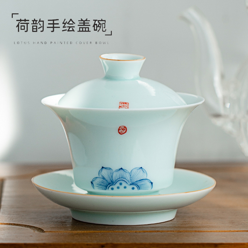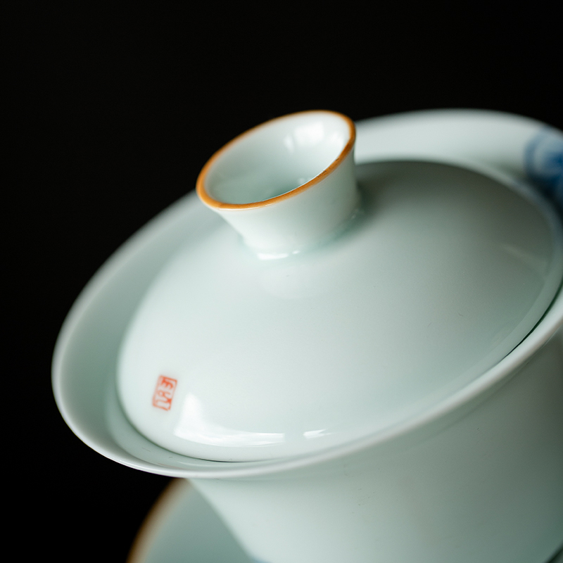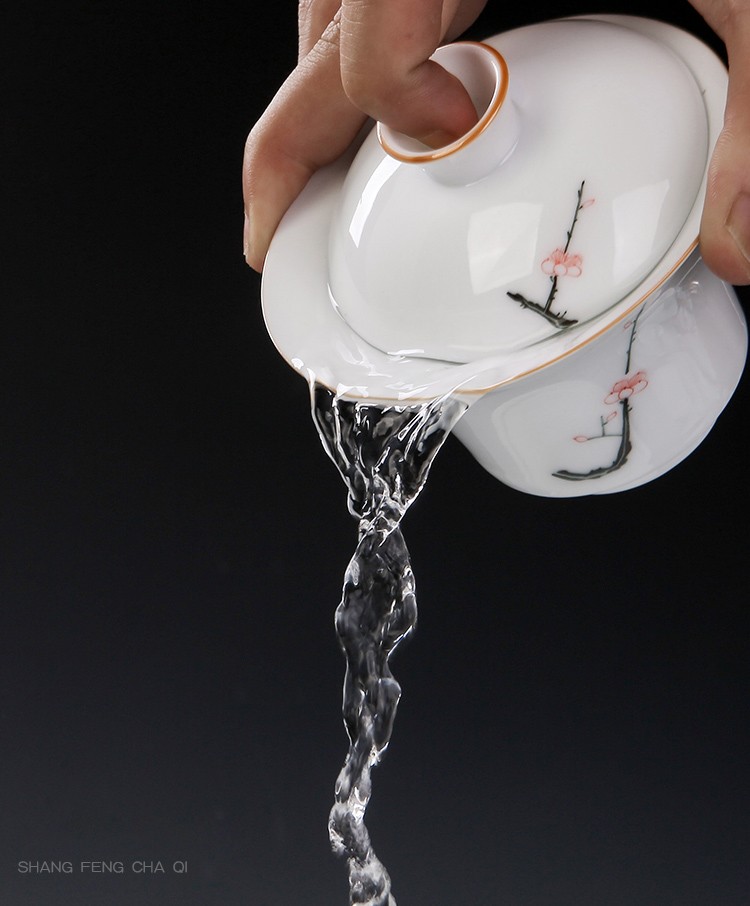 永利汇 茶具绘画黑枝桃仰钟盖碗防烫手三才碗单杯白瓷家用瓷盖碗